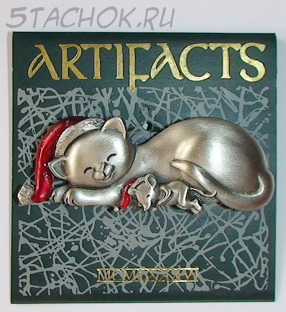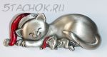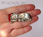 Брошь "Рождественские Котенок и Мышонок" под олово/эмаль