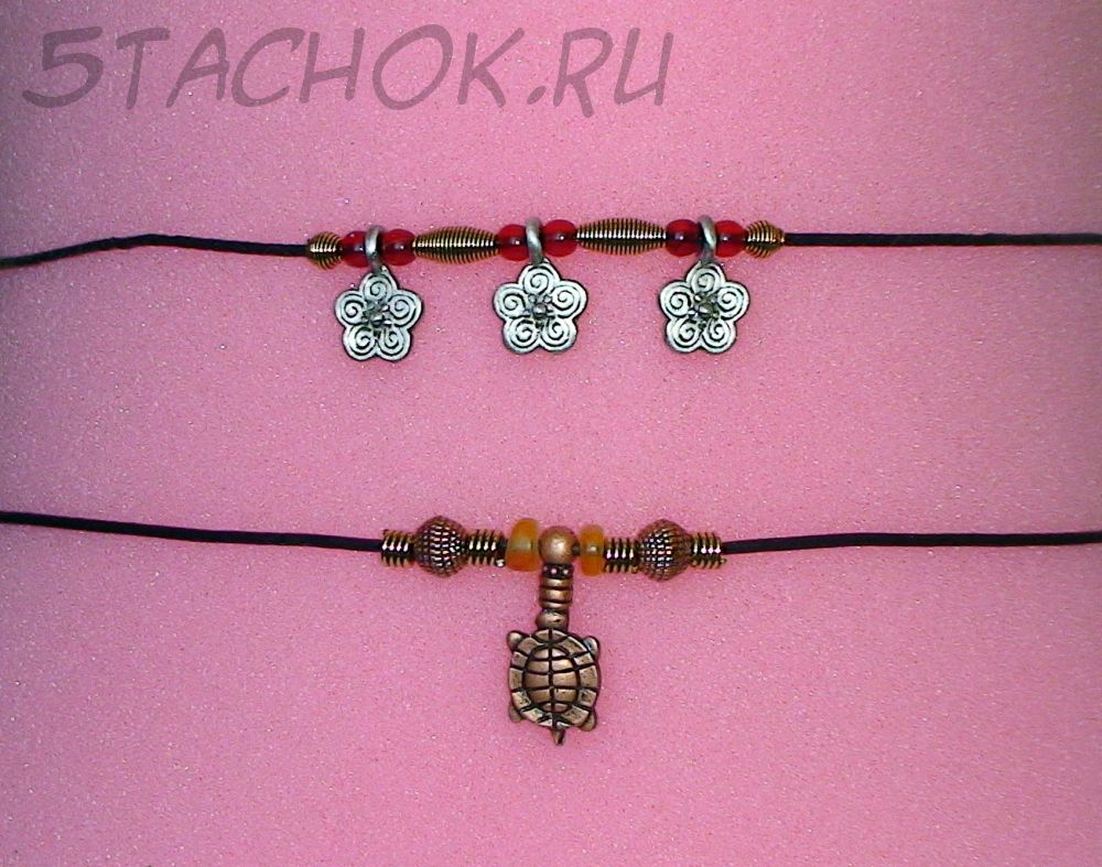 Два колье "Черепашка" и "Цветочки" олово/бронза/камушки (JJ США)