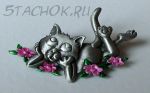 - Брошь "Мечтающий котик в цветах" под олово/эмаль