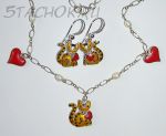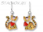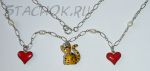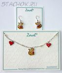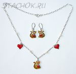 Набор Серьги и колье "Котики-валентинки" серебро 925, ювелирная эмаль, ювелирные камушки