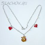 Оригинальное колье - 3 кулончика и 4 камушка на изящной серебряной цепочке.