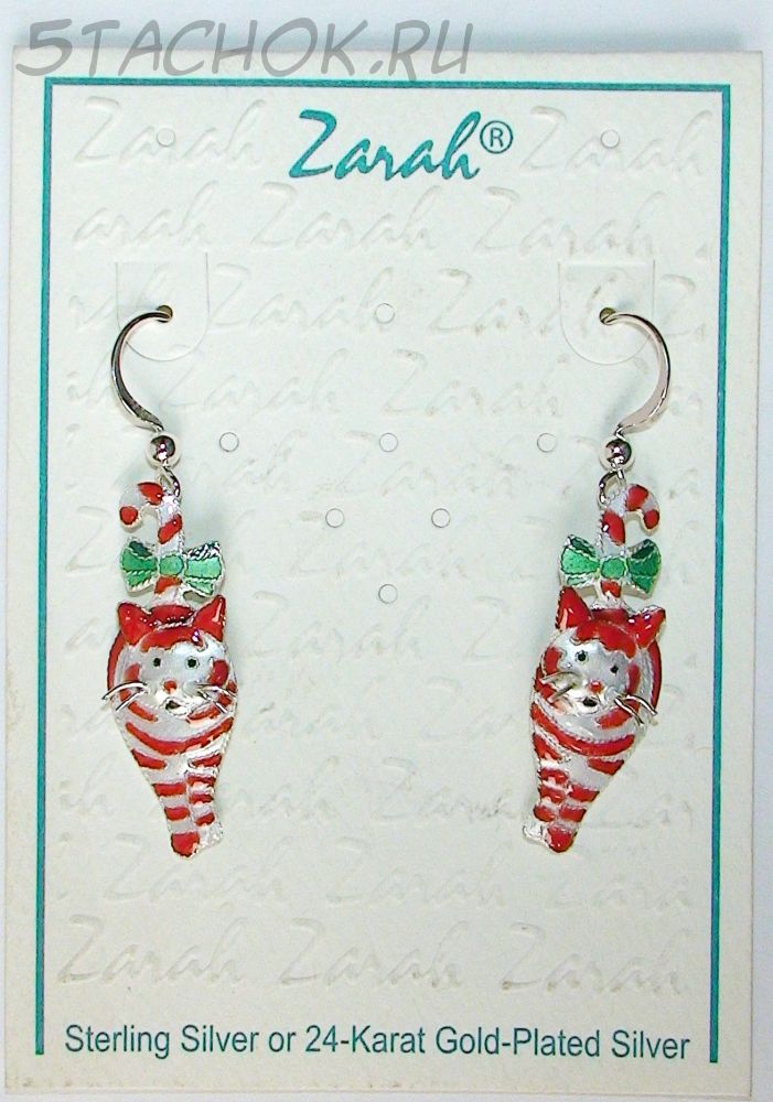 Серьги "Красная кошка" серебро 925, ювелирная эмаль
