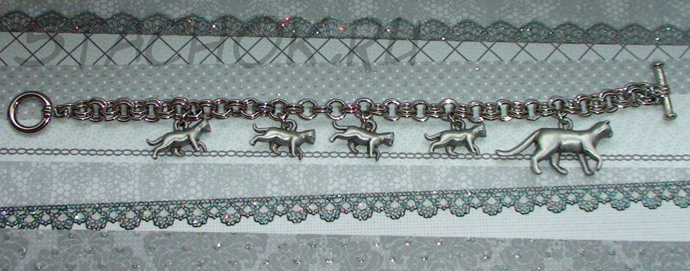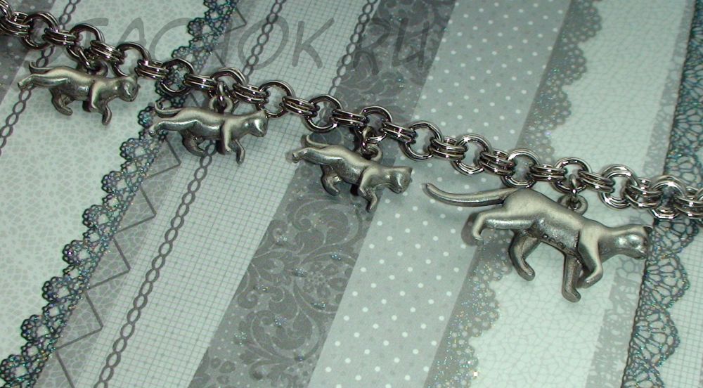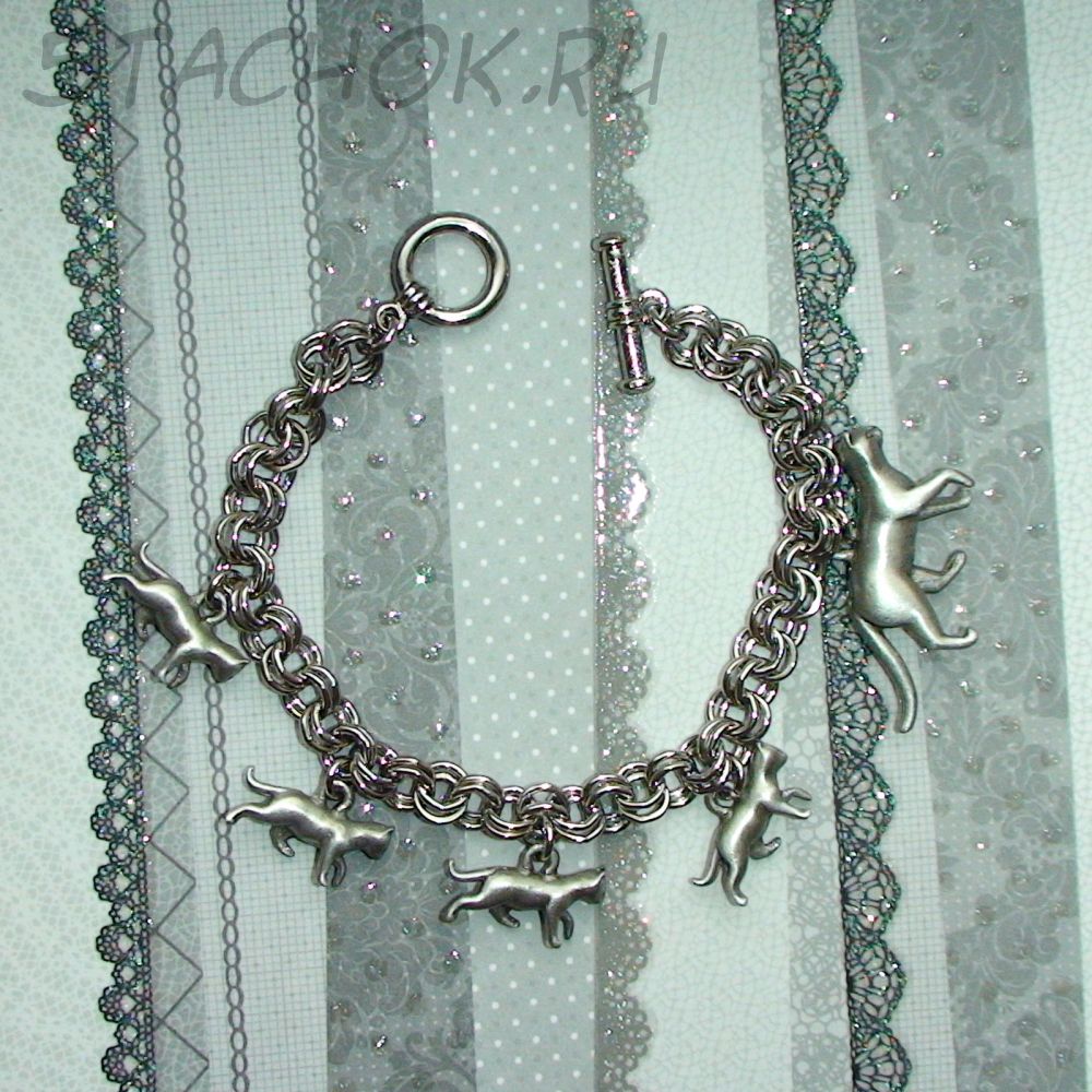 Милый оригинальный браслет! Мама кошка на прогулке со своими малышами!