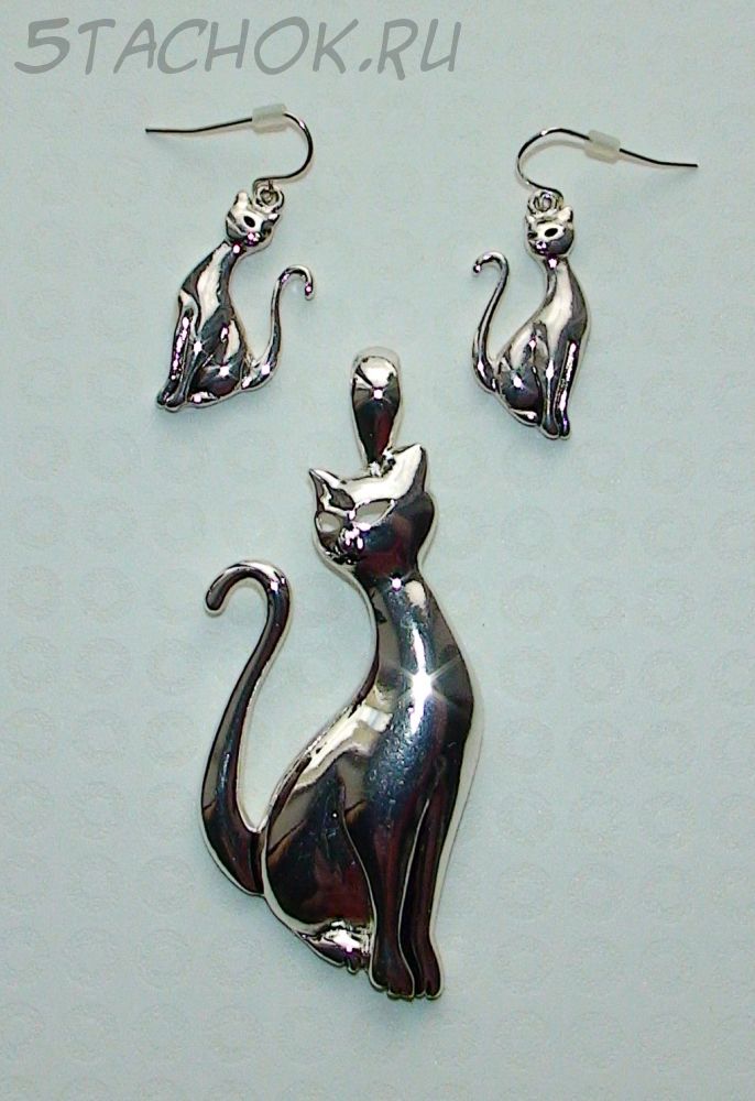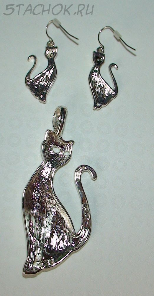 Набор Серьги и Подвеска "Элегантная кошка" под серебро
