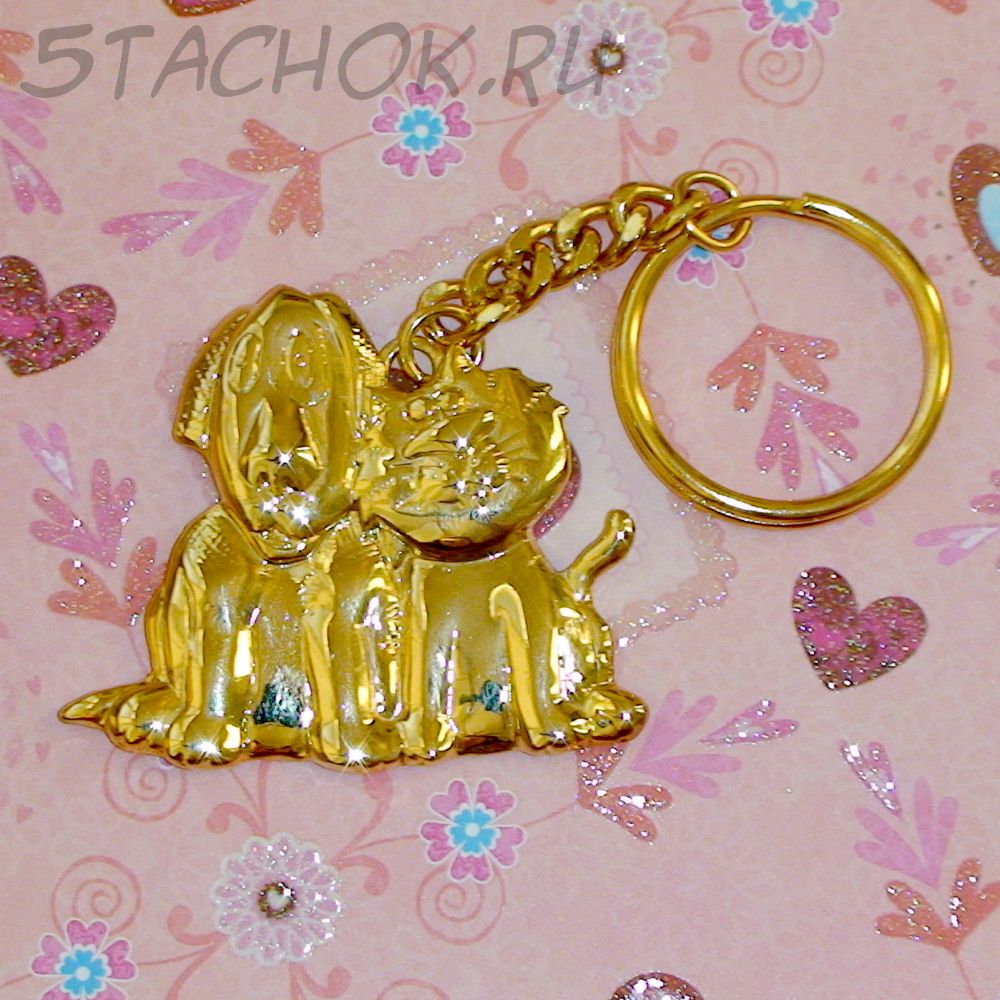 Брелок "Кот и Пес - друзья навеки!" под золото