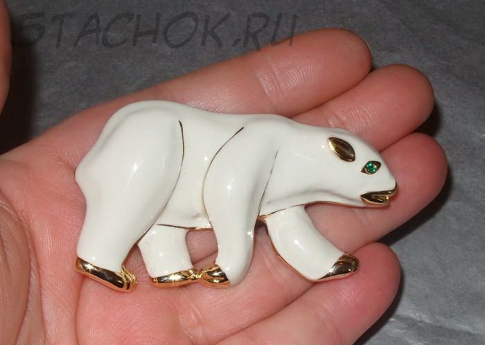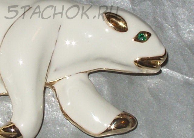 Брошь "Белый медведь" под золото, ювелирная эмаль