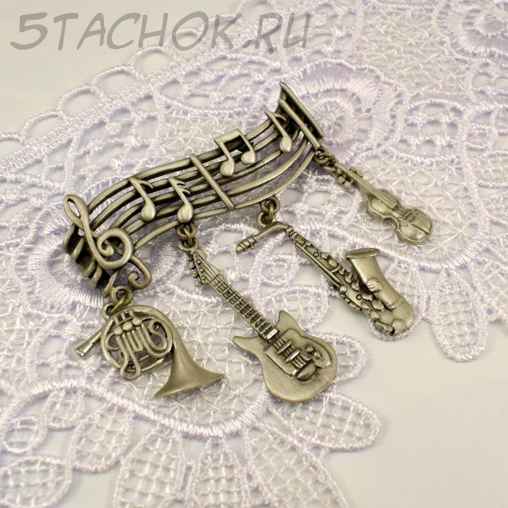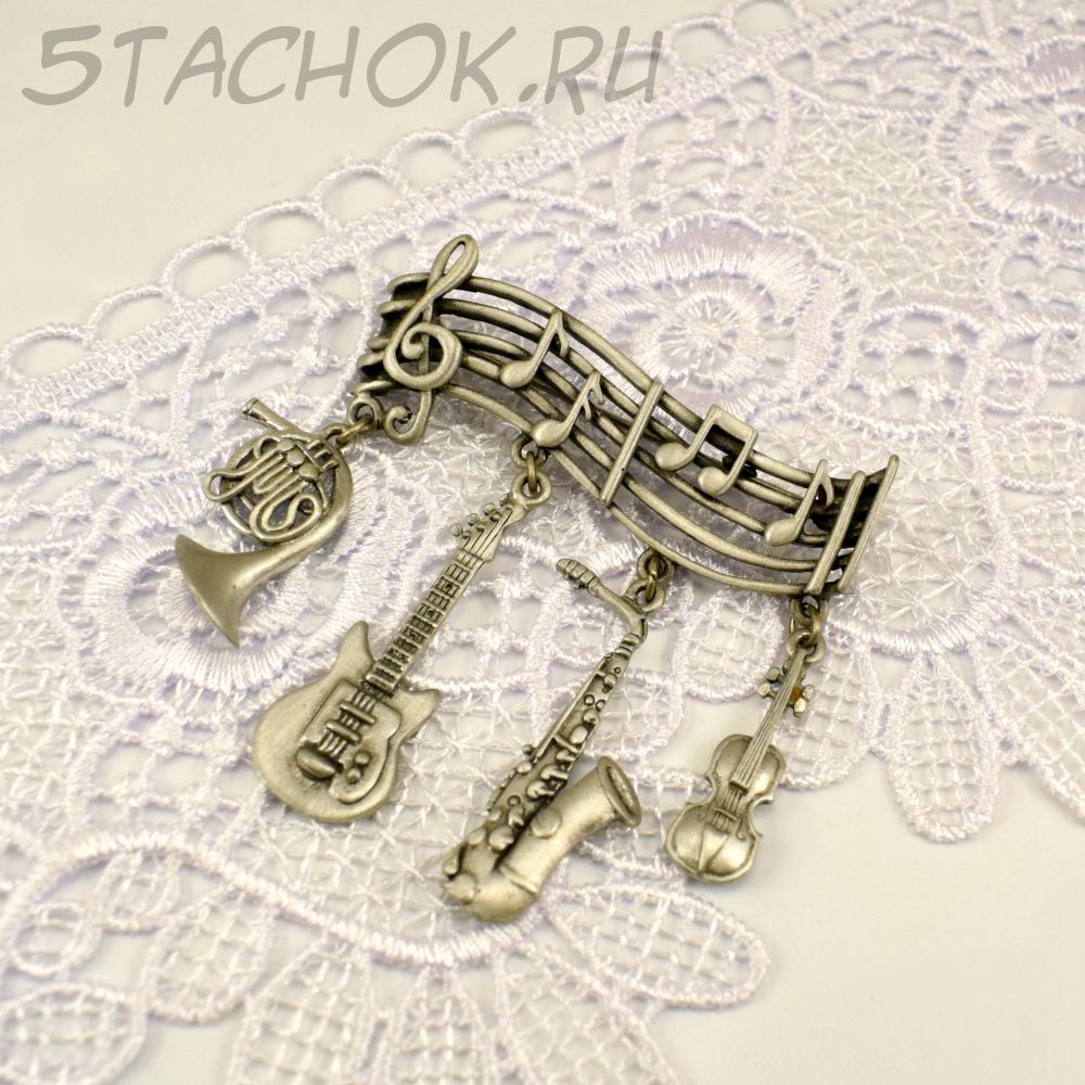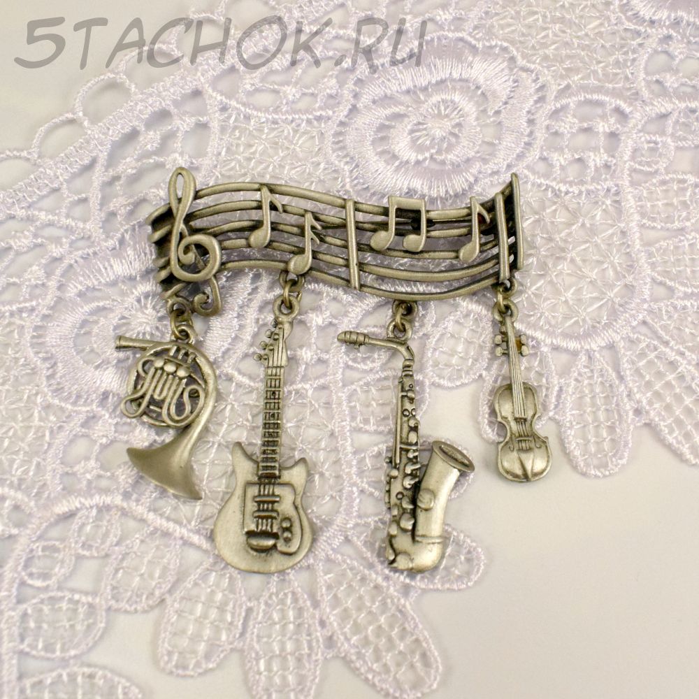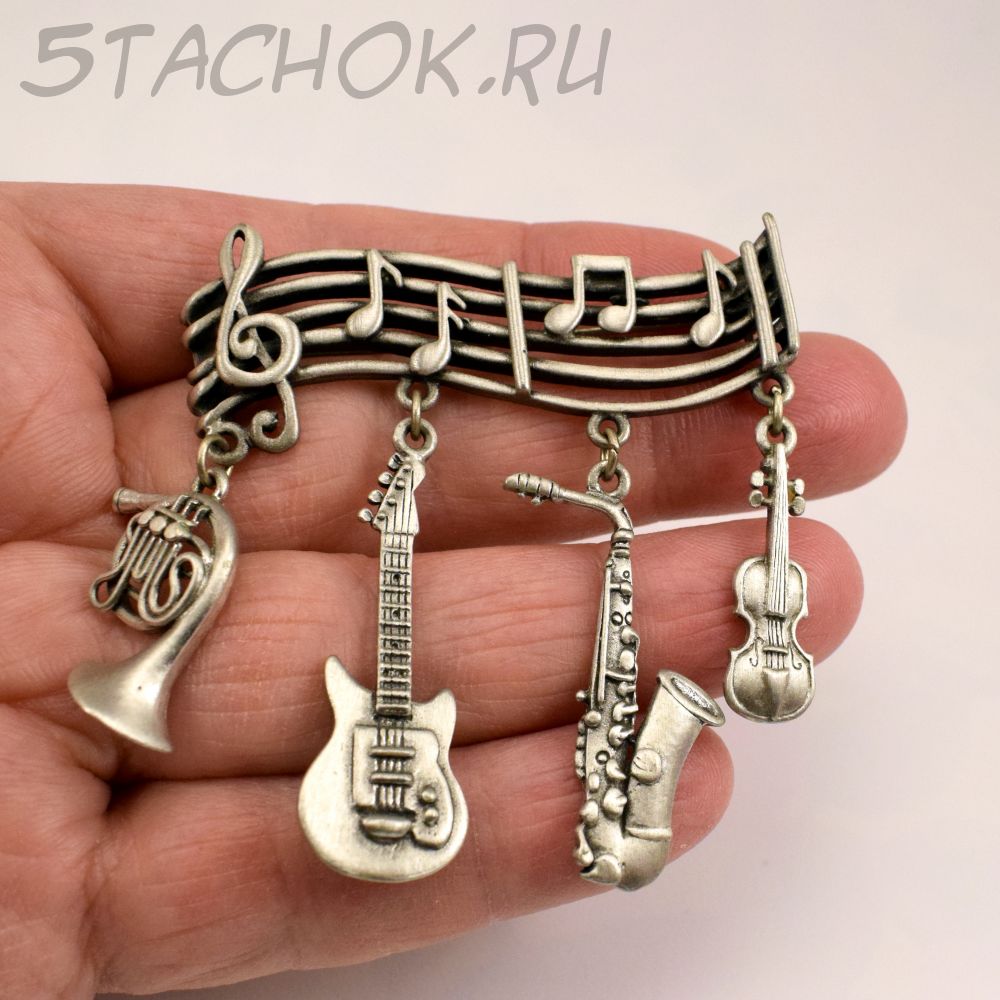 Брошь "Музыкальные инструменты" цвет олова (JJ США)