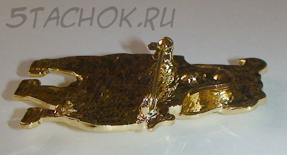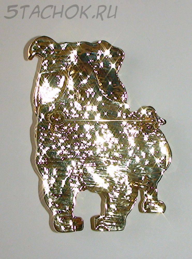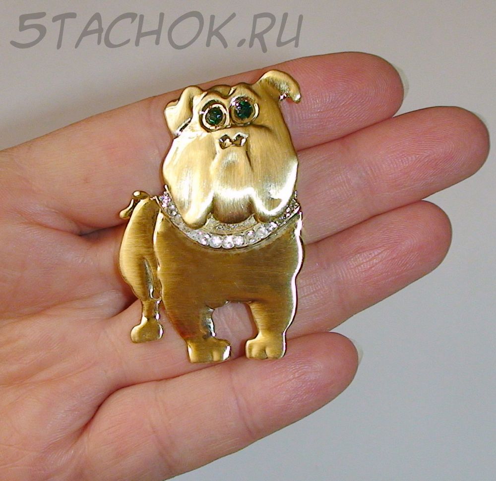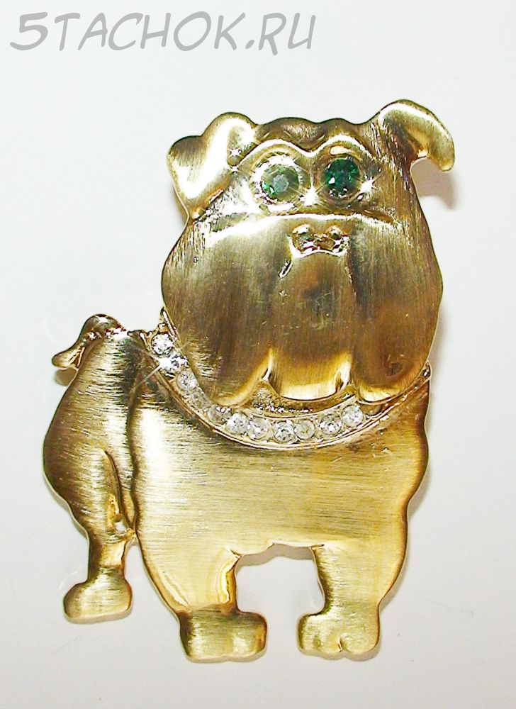 Брошь "Бульдожка с ошейником" под золото, камушки
