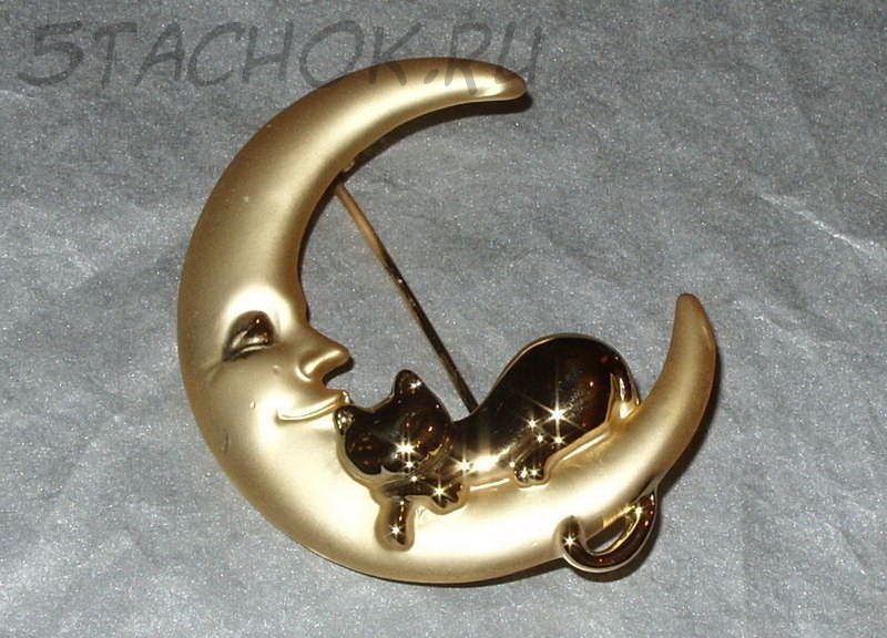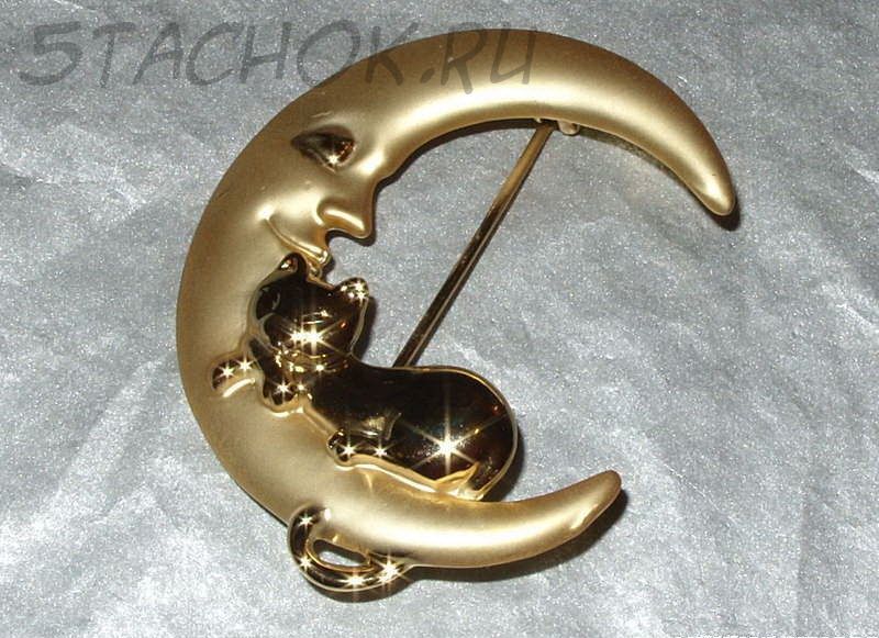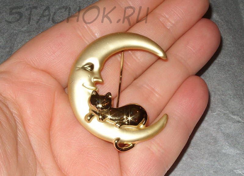 Брошь "Котик спит на луне" под золото (бесплатная доставка из США/Великобритании)