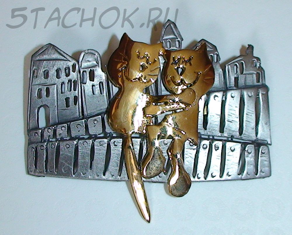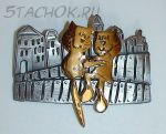 Брошь "Котик и кошечка в большом городе" под золото и олово