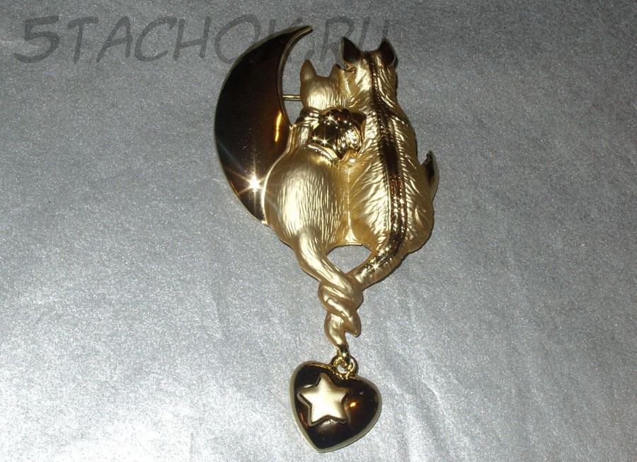 Брошь "Кот, кошечка и полумесяц" (AJC США)