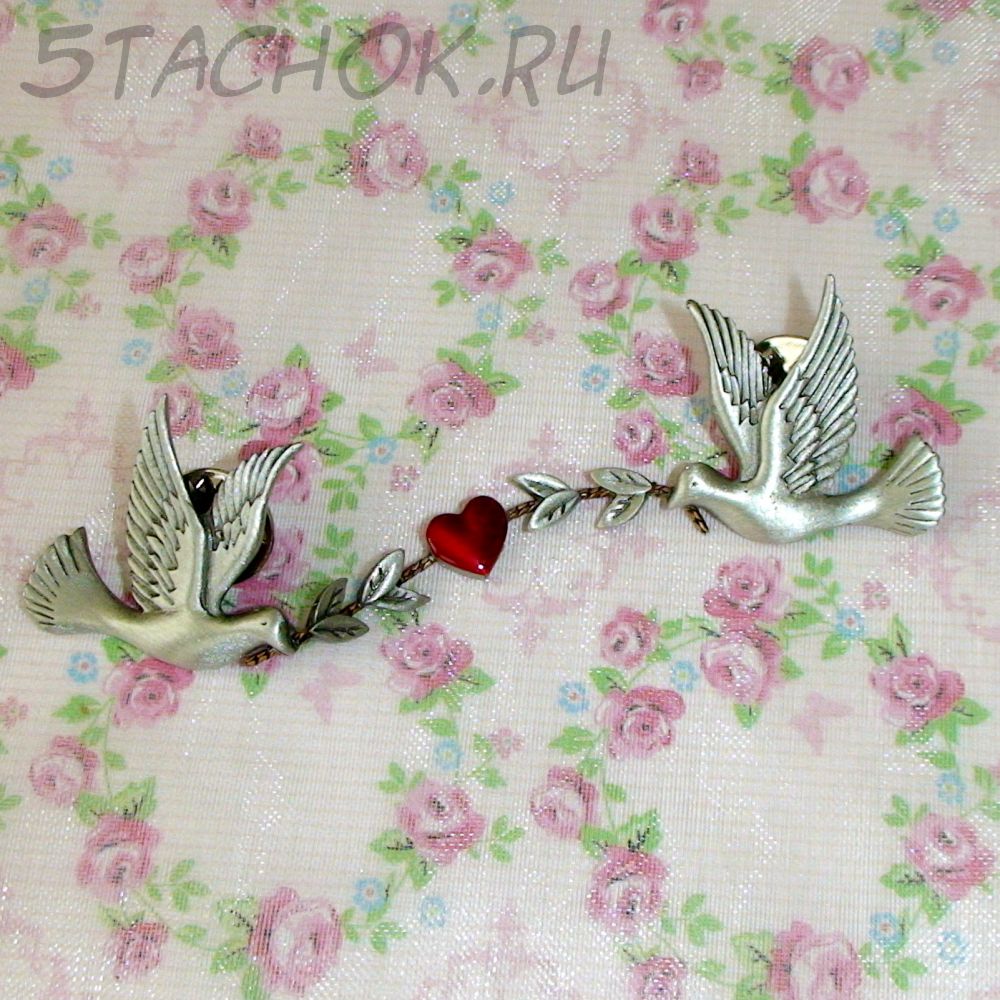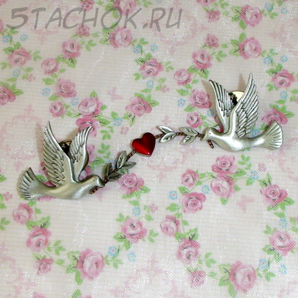 Брошь "Голубки с сердечком" под олово, ювелирная эмаль