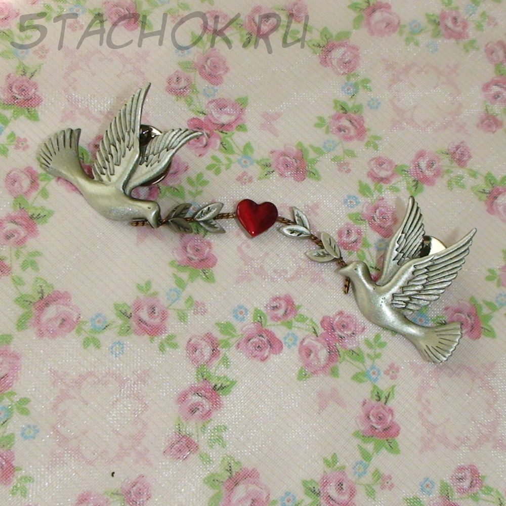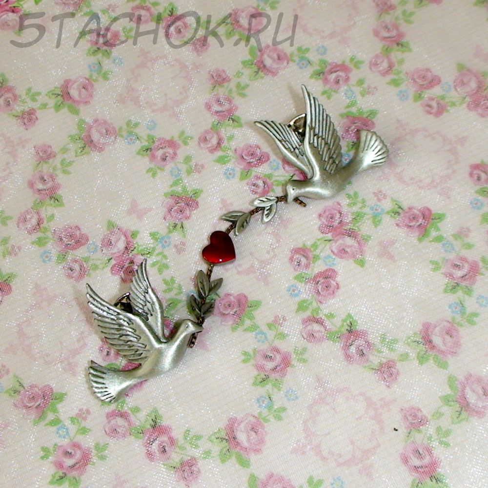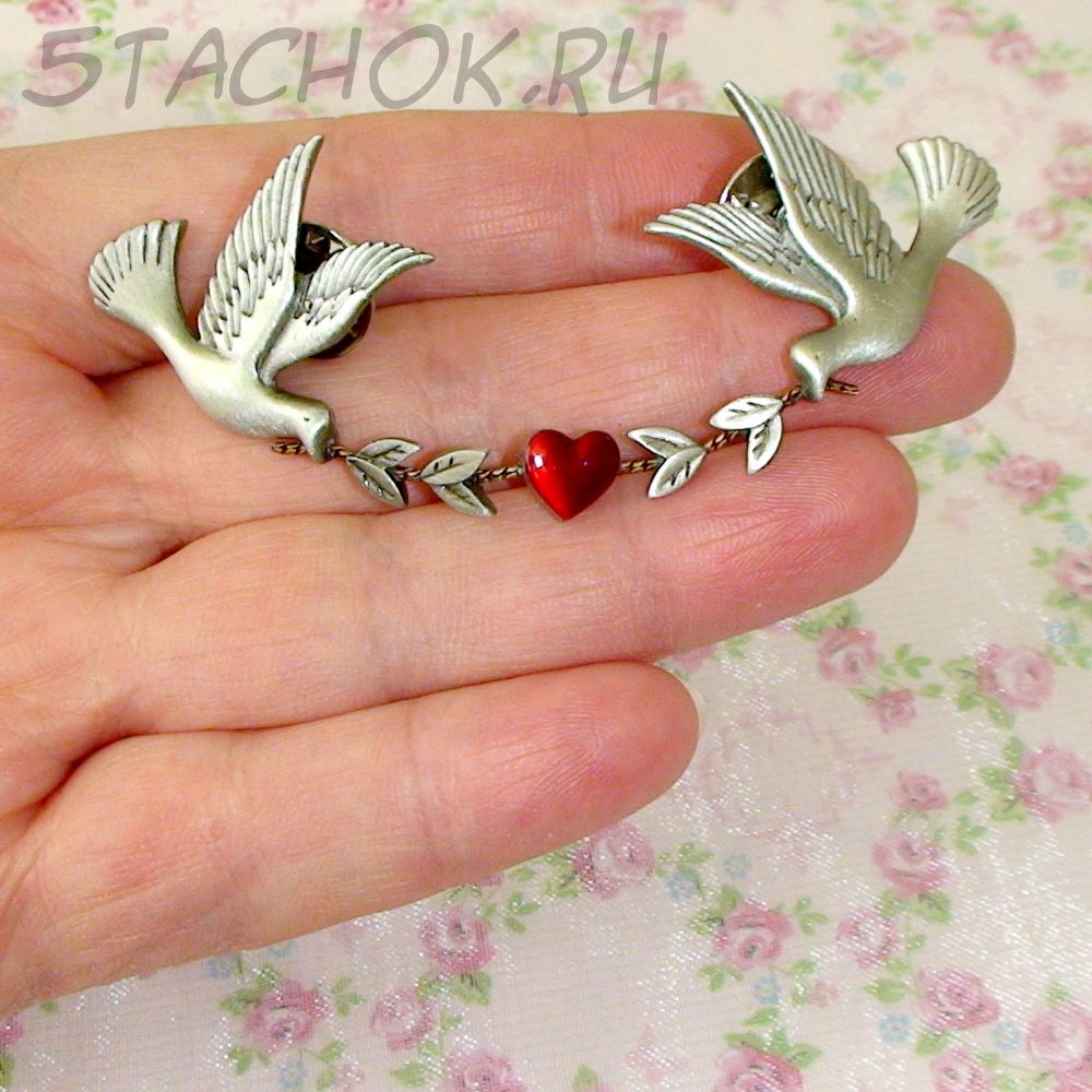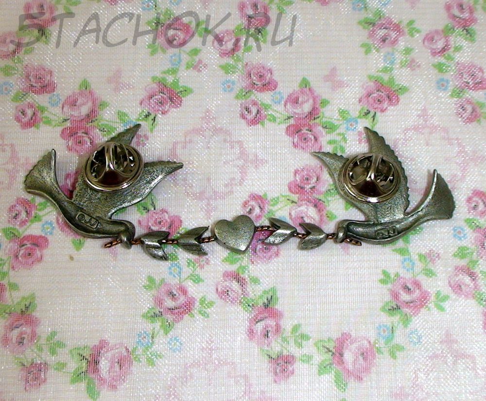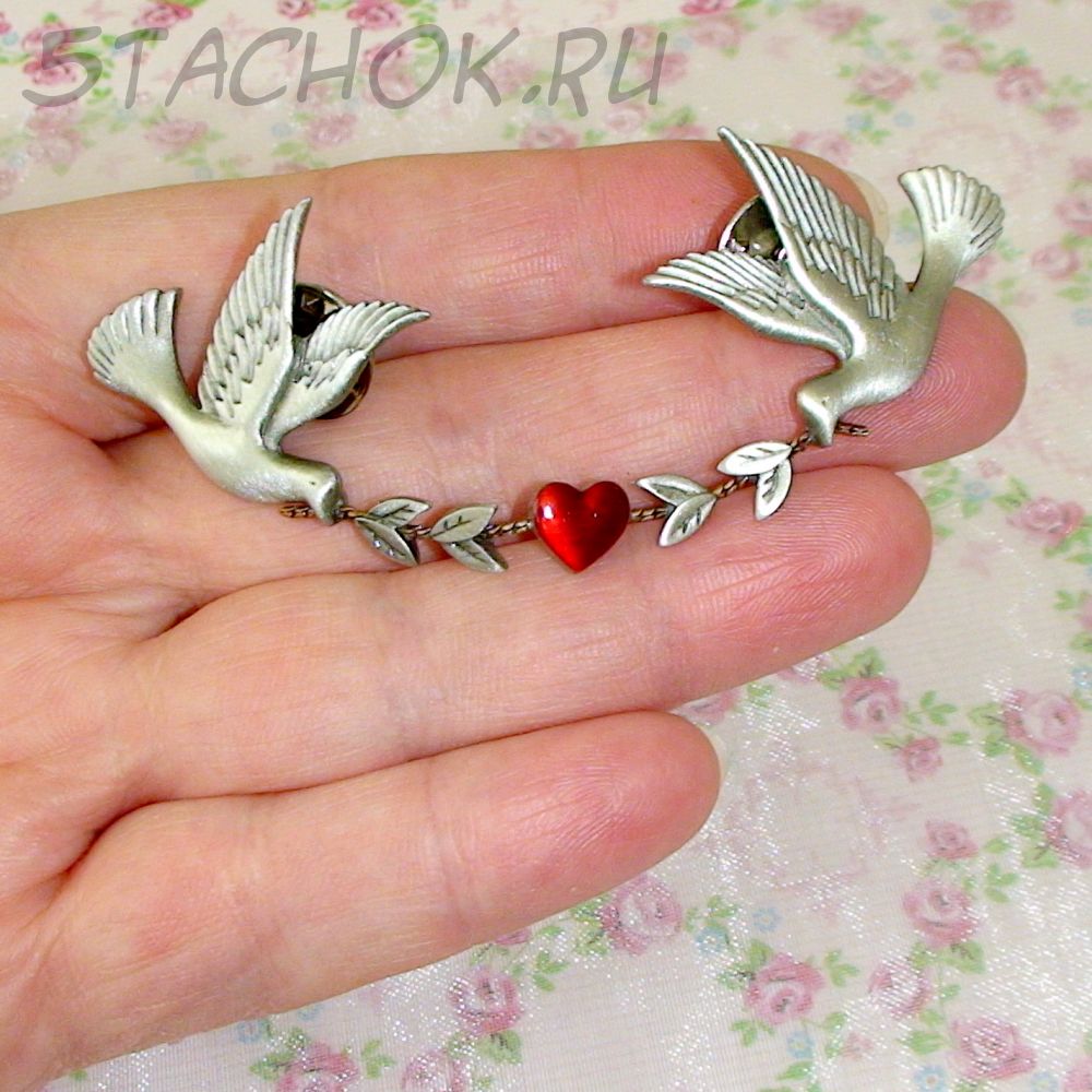Очень редкая брошь. Голубки, как отдельные брошки, объеденены веточкой с сердечком.