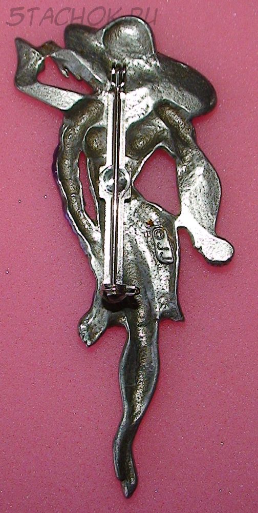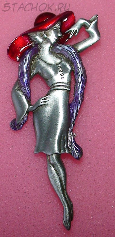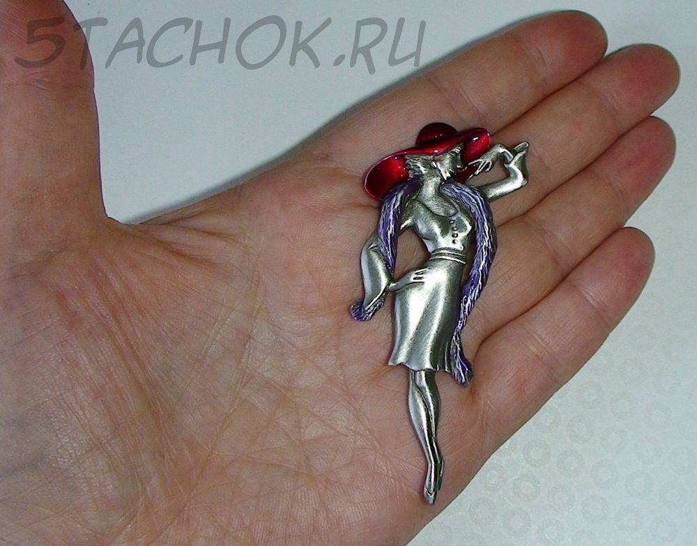 Брошь "Дама в шляпе и боа" под олово в цвете