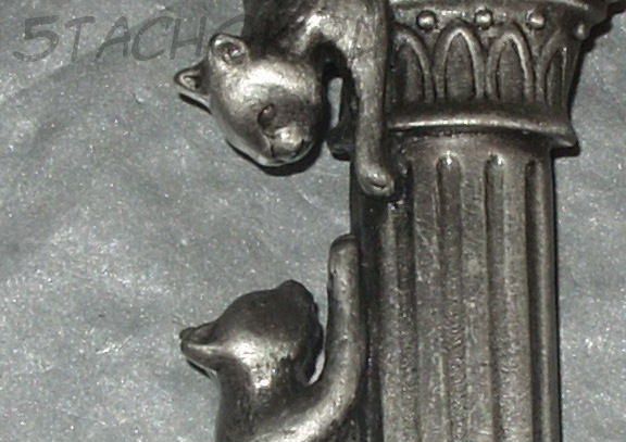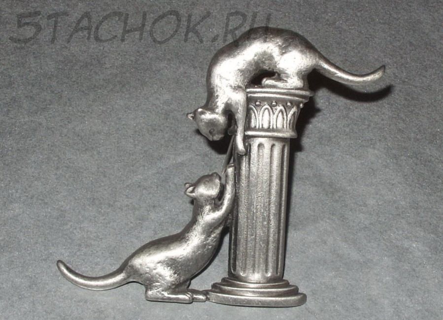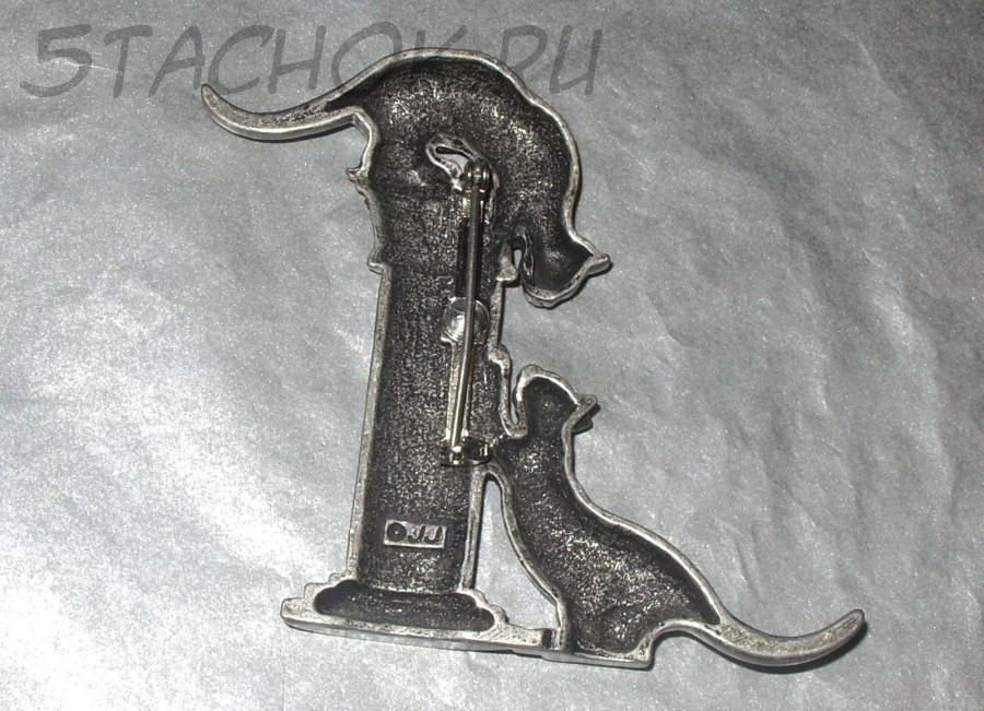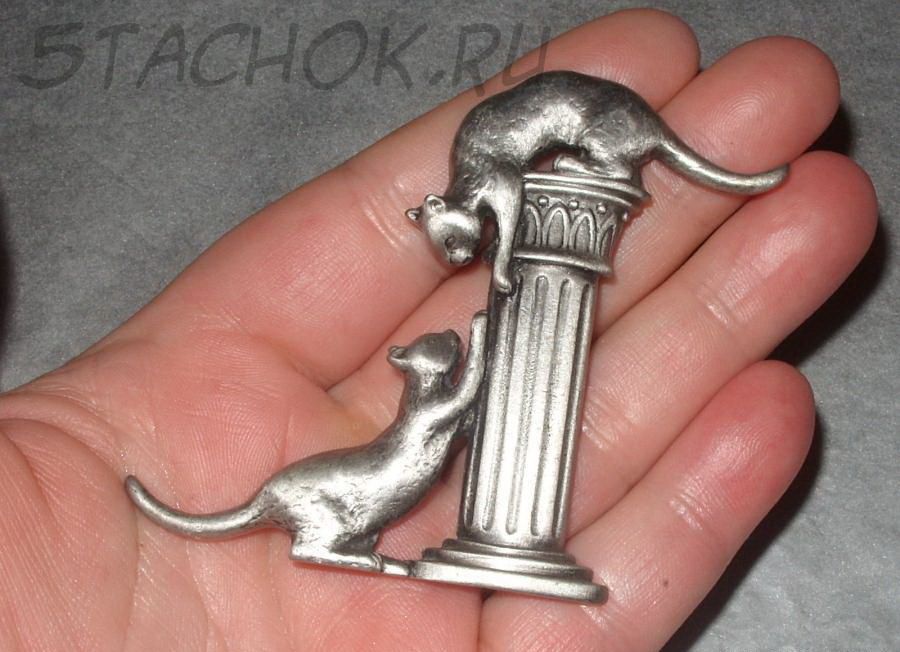 Брошь "Две Кошечки у пьедестала" цвет олова (JJ США)