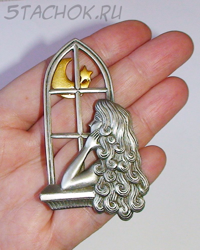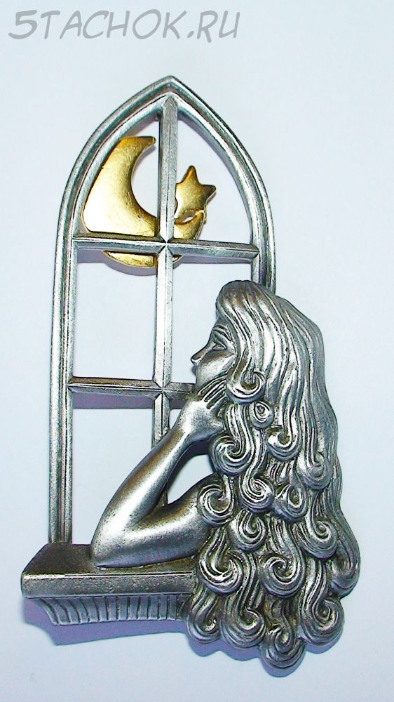 Брошь "Девушка ждет любимого" под олово/золото