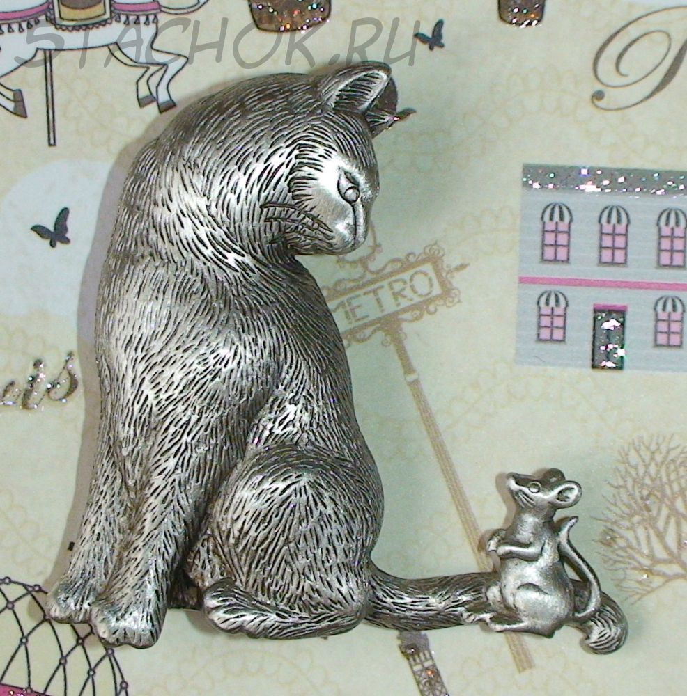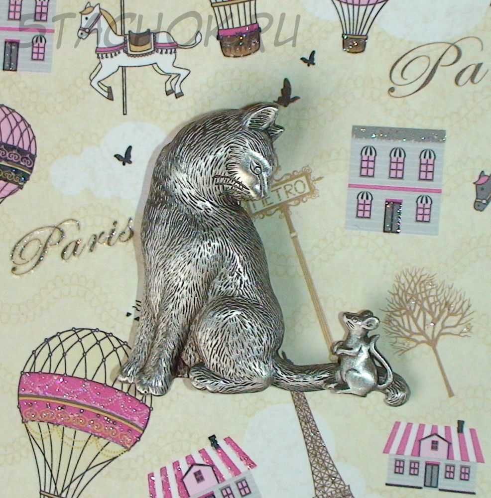 Брошь "Дружба Кошки и мышки" под олово