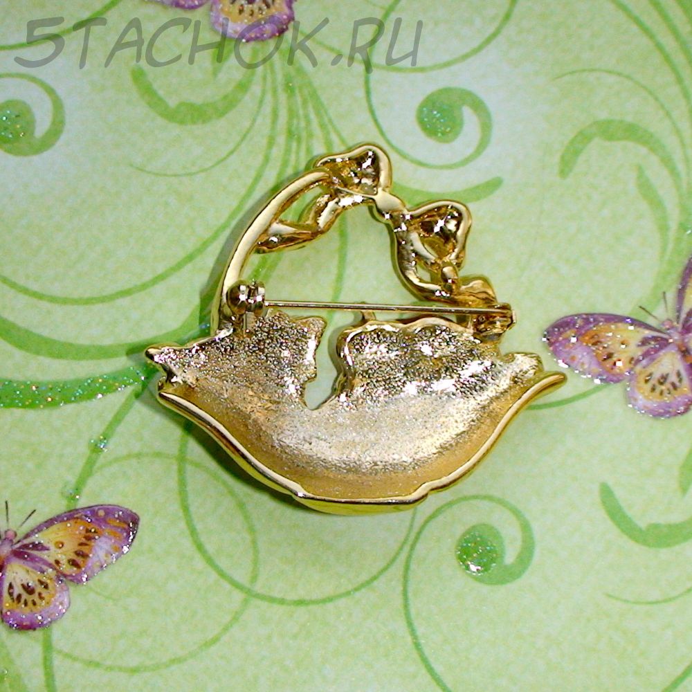 Брошь "Корзина с фруктами" под золото, эмаль, стразы