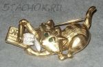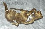 Брошь "Котик и сардины" под золото