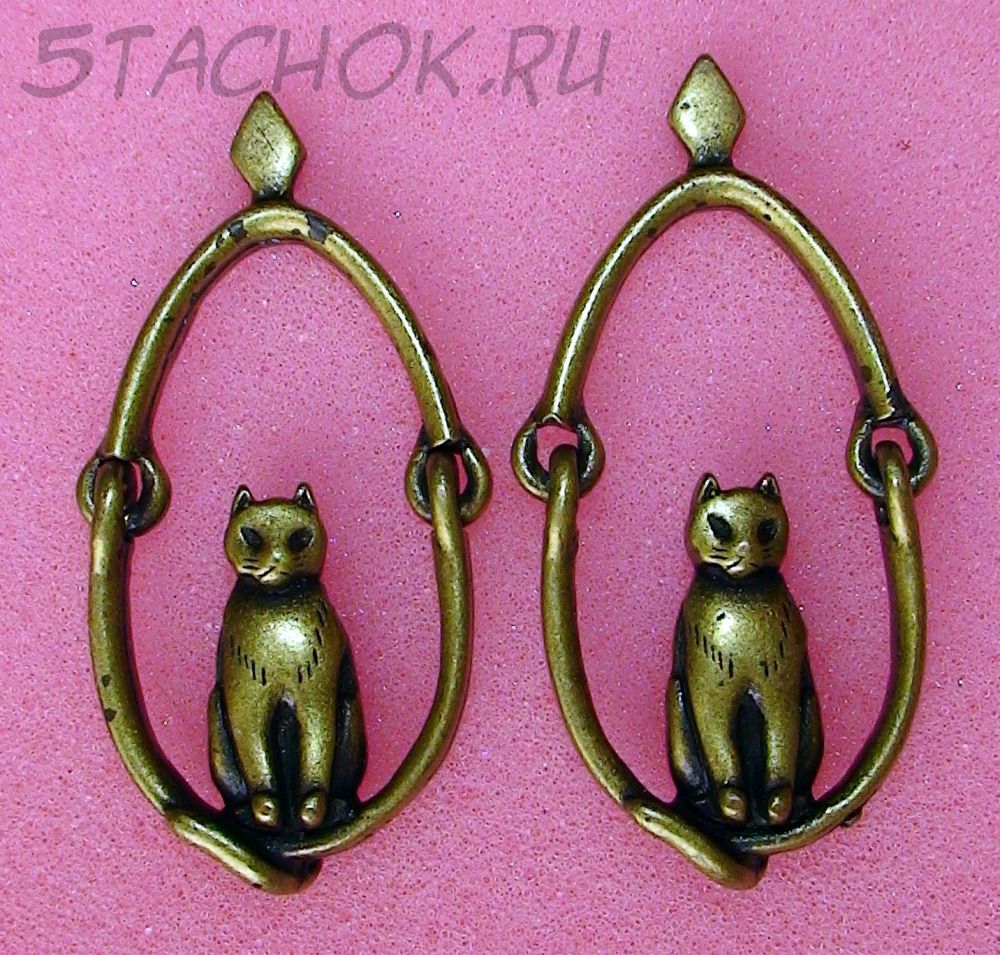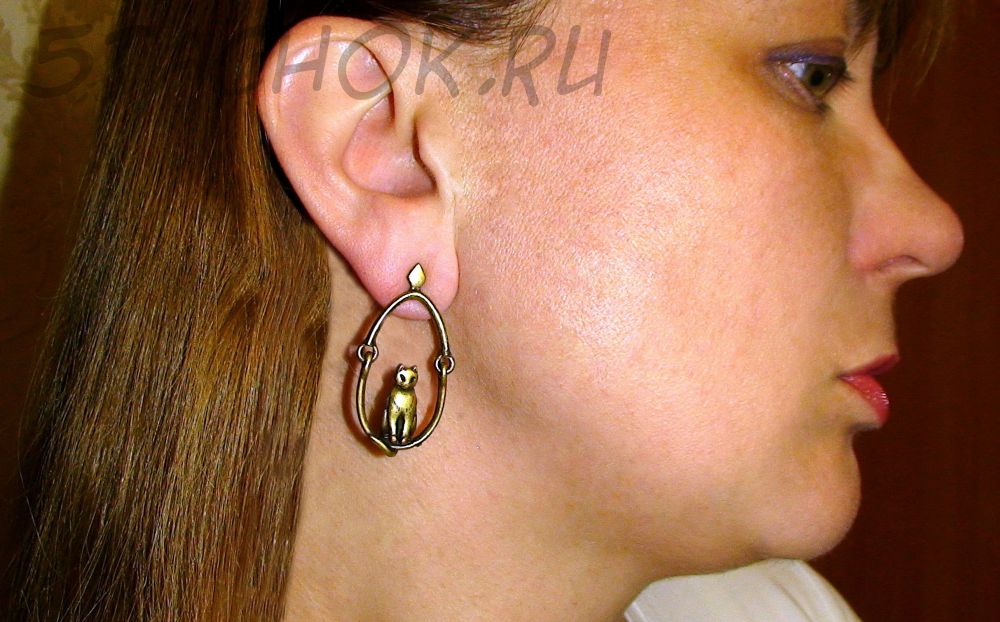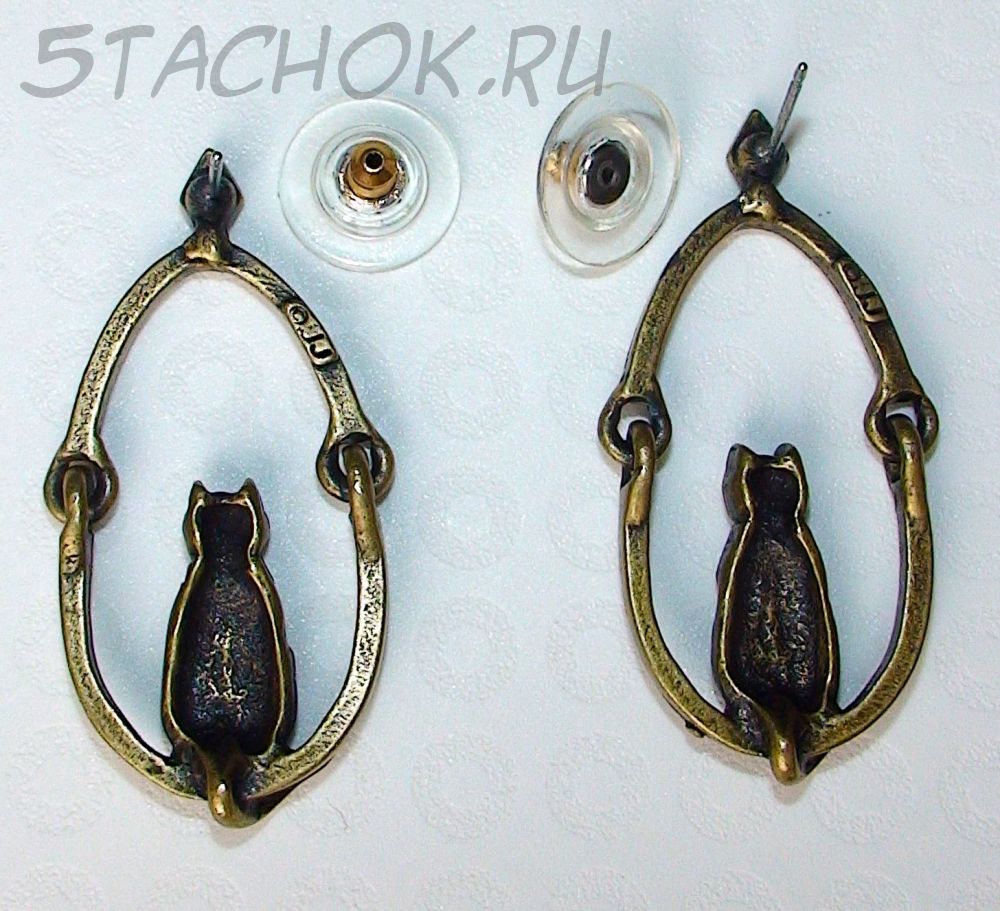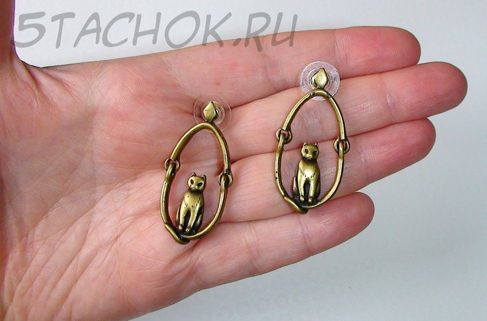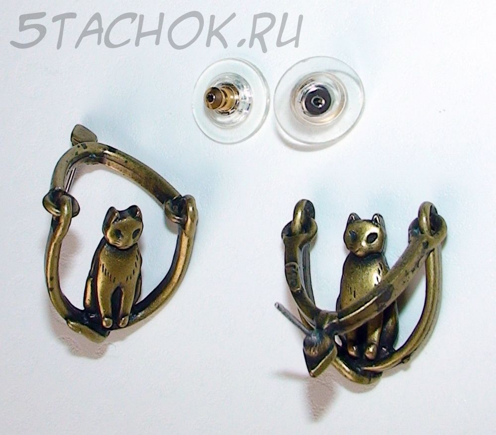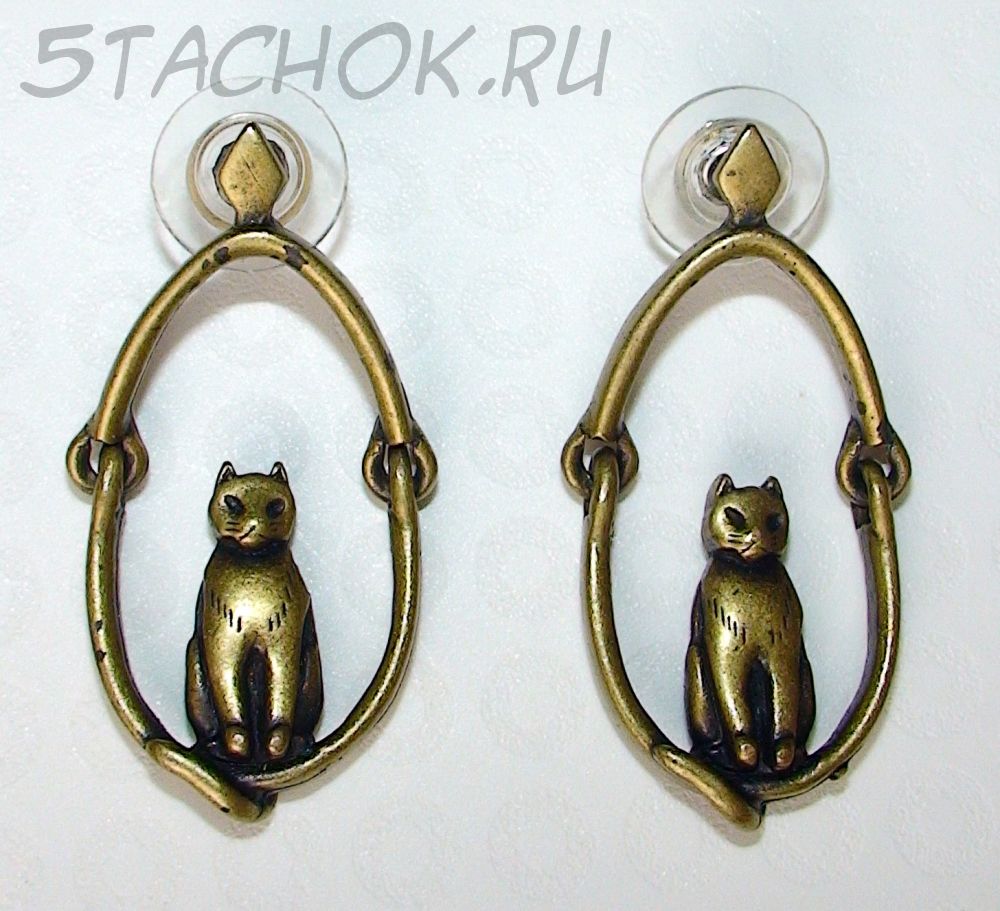 Серьги-гвоздики "Кошечка в обруче" под бронзу