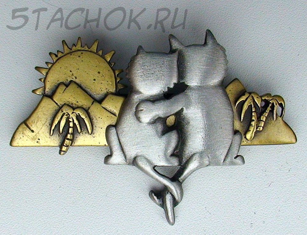 Брошь "Кот и кошечка при закате" под олово и бронзу
