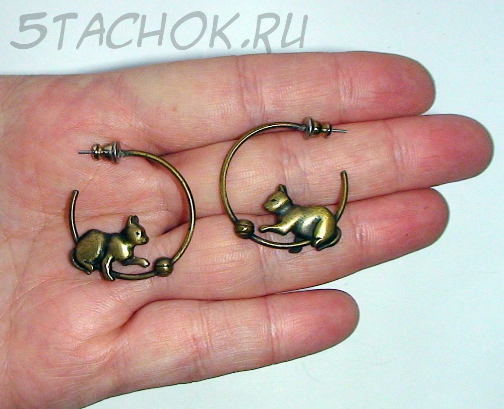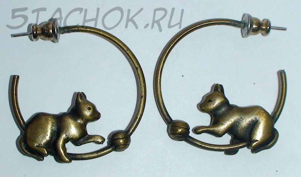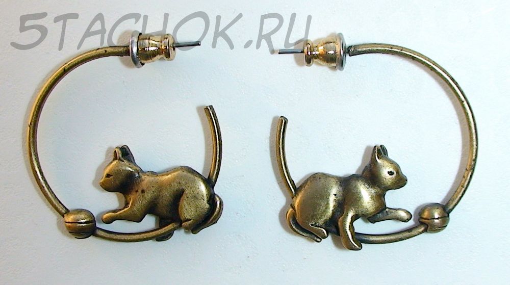 Серьги-кольца гвоздики "Котята и мячики" бронзу