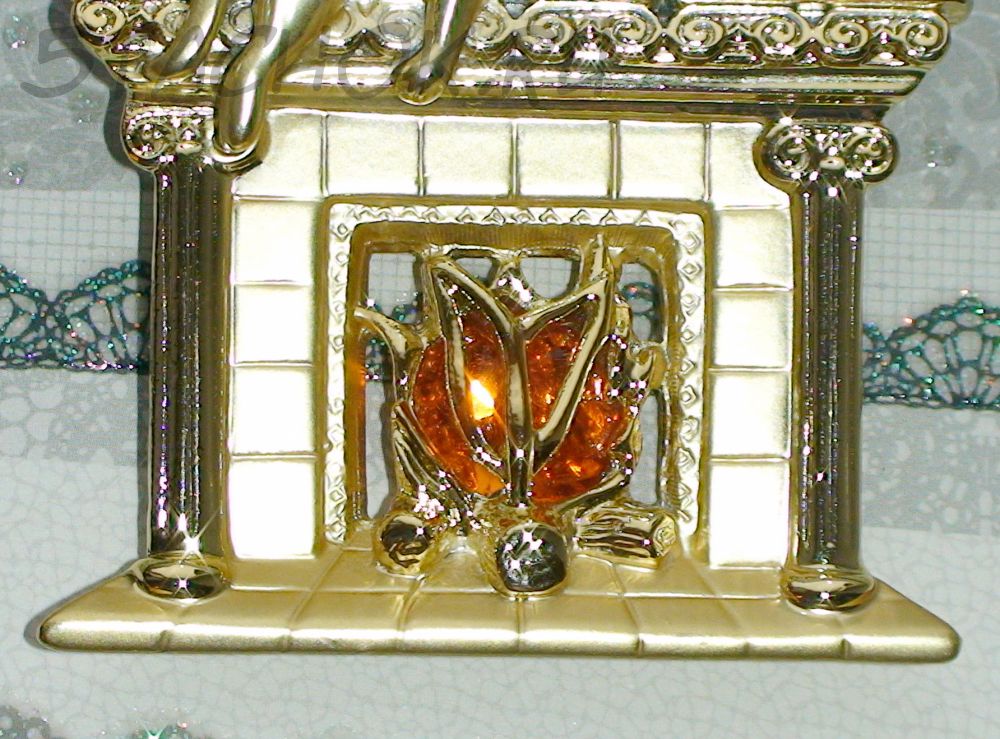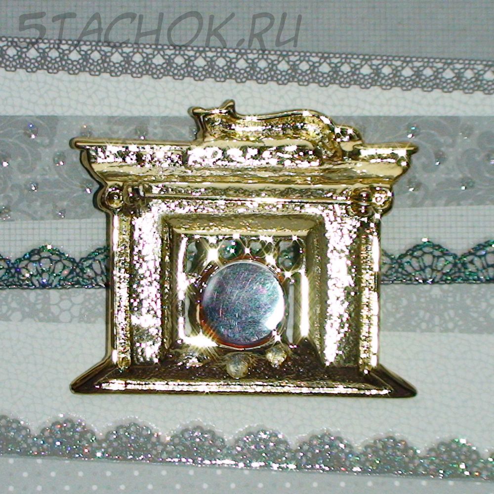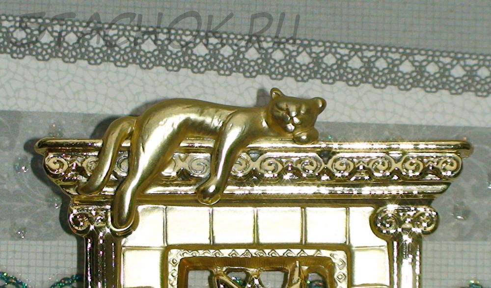 Брошь "Котик на камине" под золото, камень