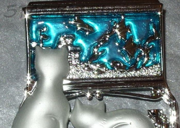 Брошь выполнена под матовое и блестящее серебро, аквариум выполнен в бирюзовой эмали. У котят подвижные хвостики!