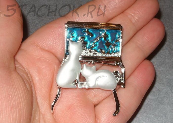Очень редкая и очень красивая брошь! Любопытные котята наблюдают за рыбками в аквариуме и махают хвостиками...