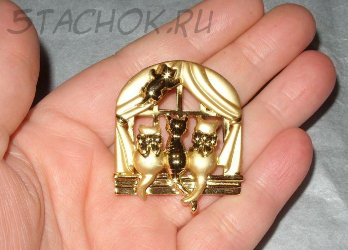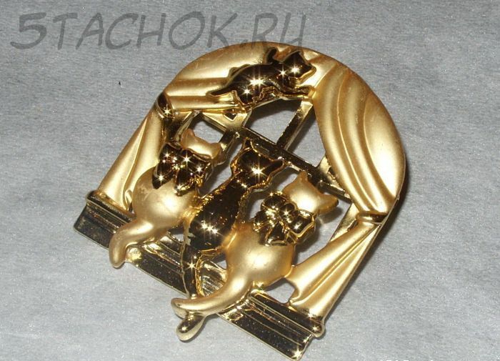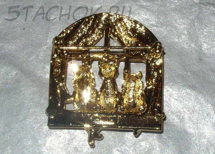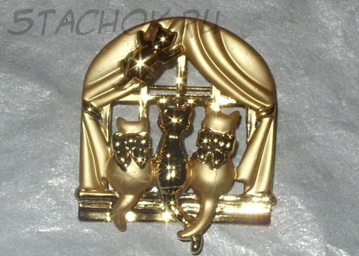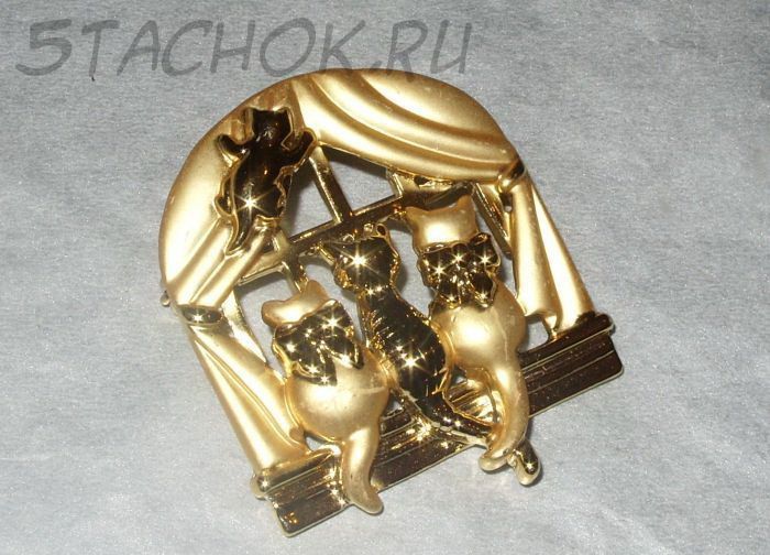 Брошь "Котята у окошка" цвет золота (AJC США)