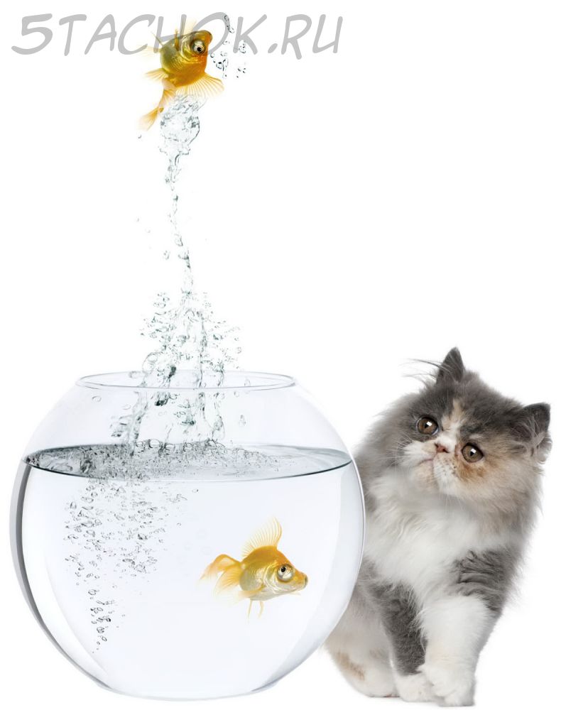 Котик пытался поймать рыбку в аквариуме, а она выскользнула из его лапок! Котэ крайне удивлен!