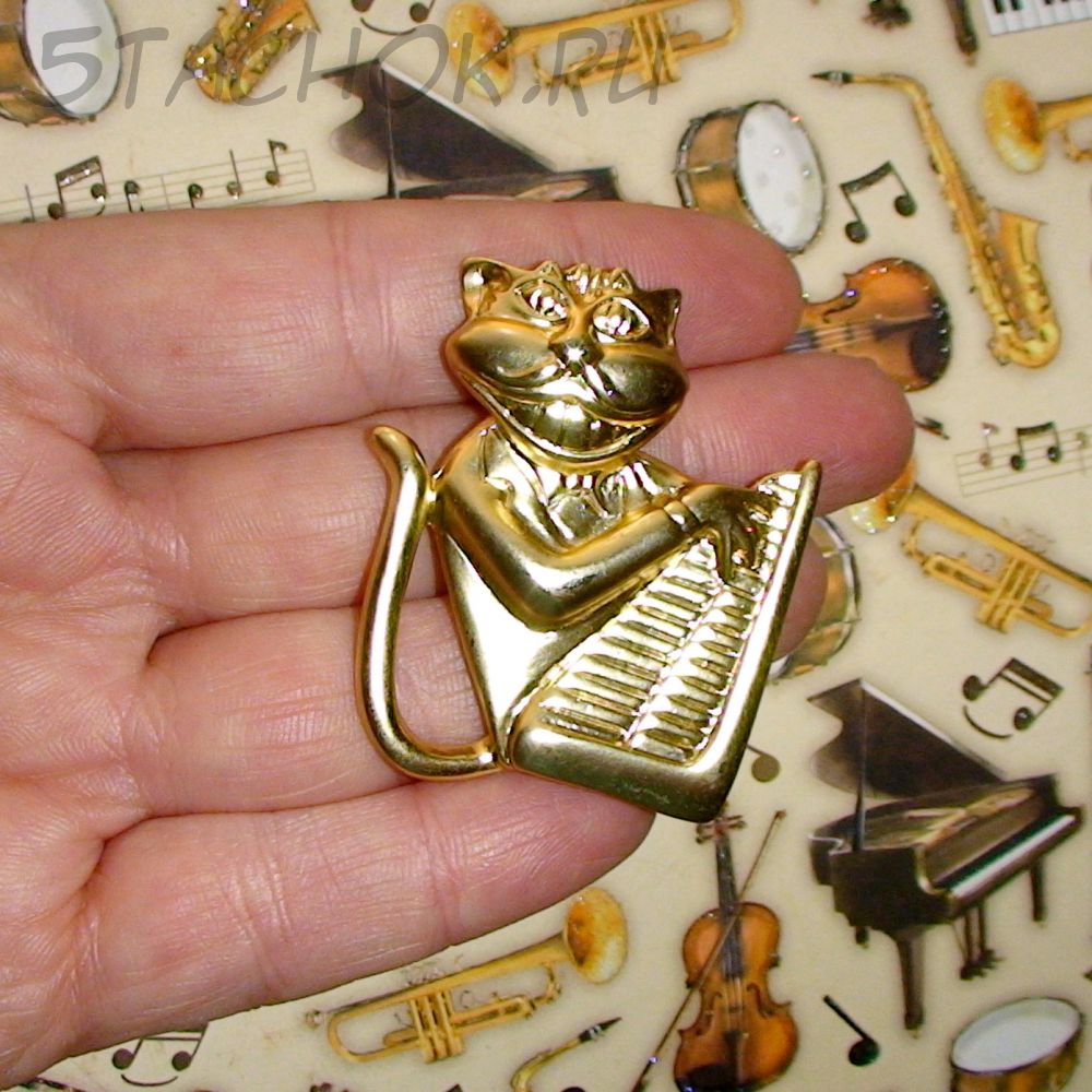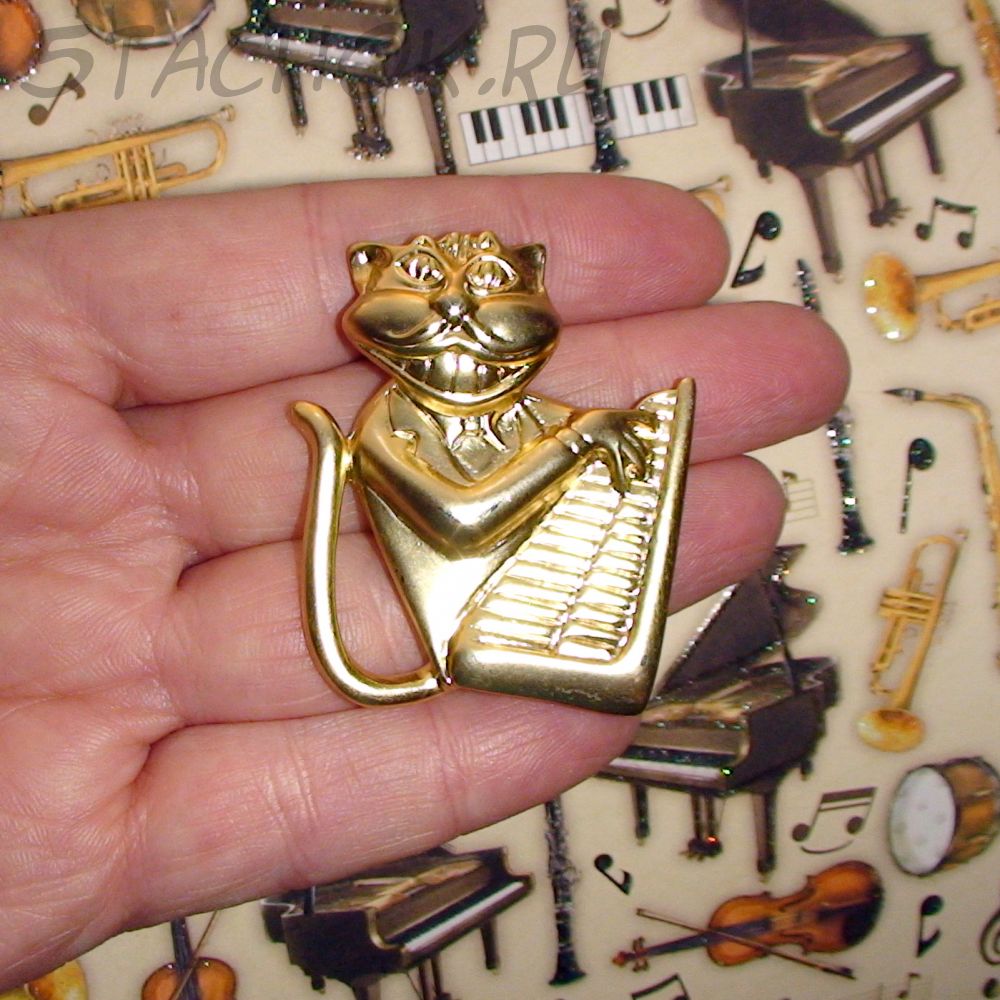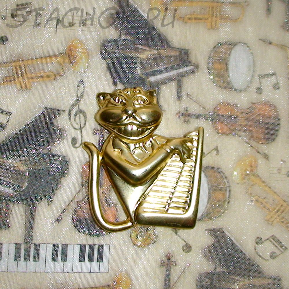 Брошь "Кот-клавишник" под золото