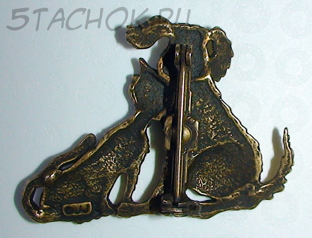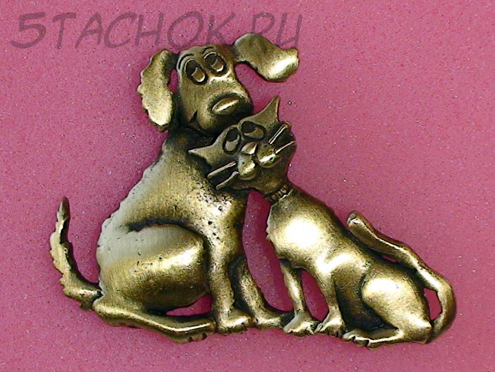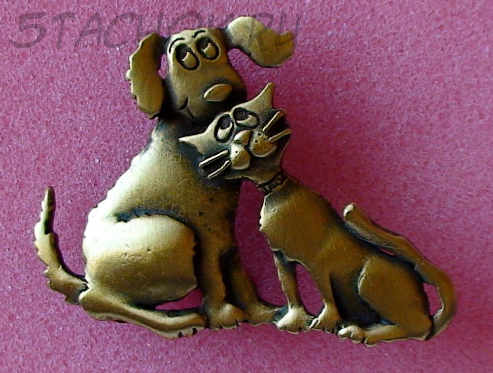 Брошь "Кот и Пес - лучшие друзья" под бронзу