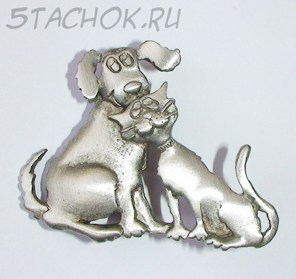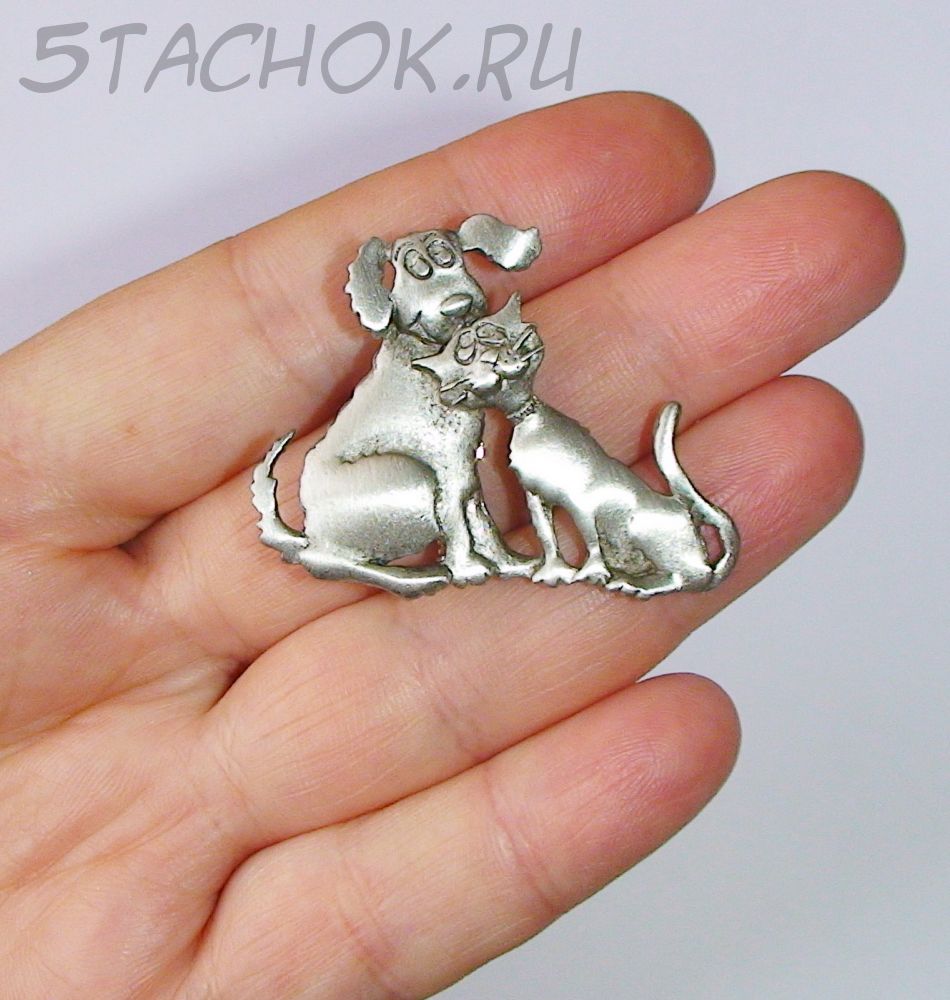 Брошь "Кот и Пес - лучшие друзья" под олово