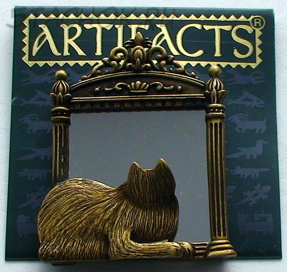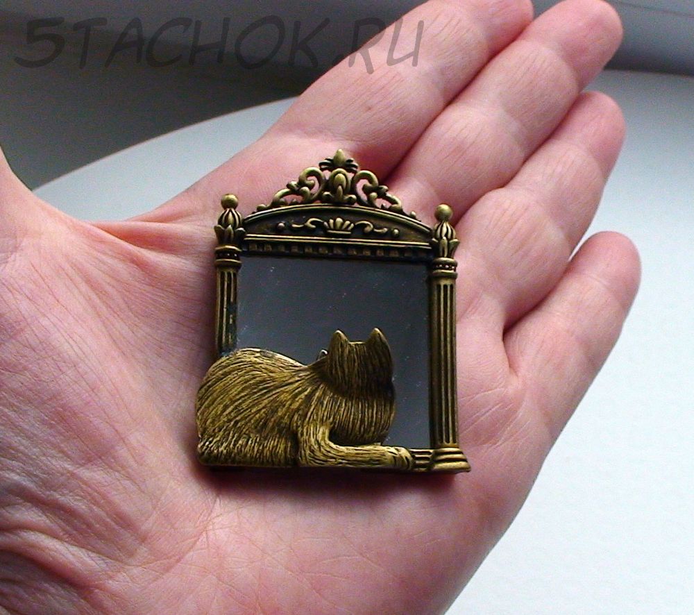 Брошь "Кошечка перед зеркалом" под бронзу