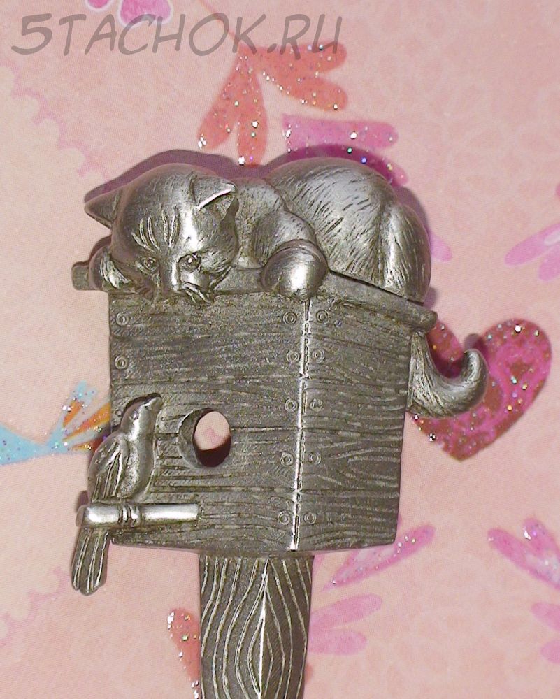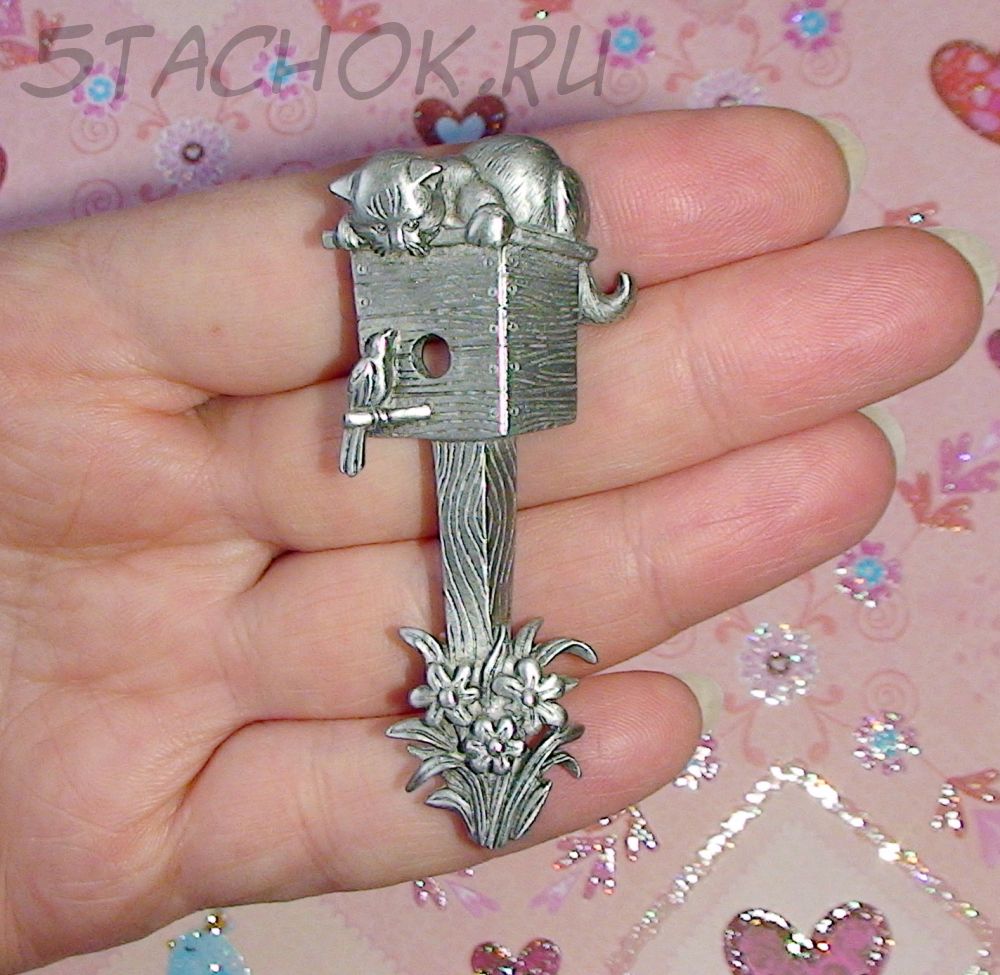 Брошь "Кошка на скворечнике" под олово