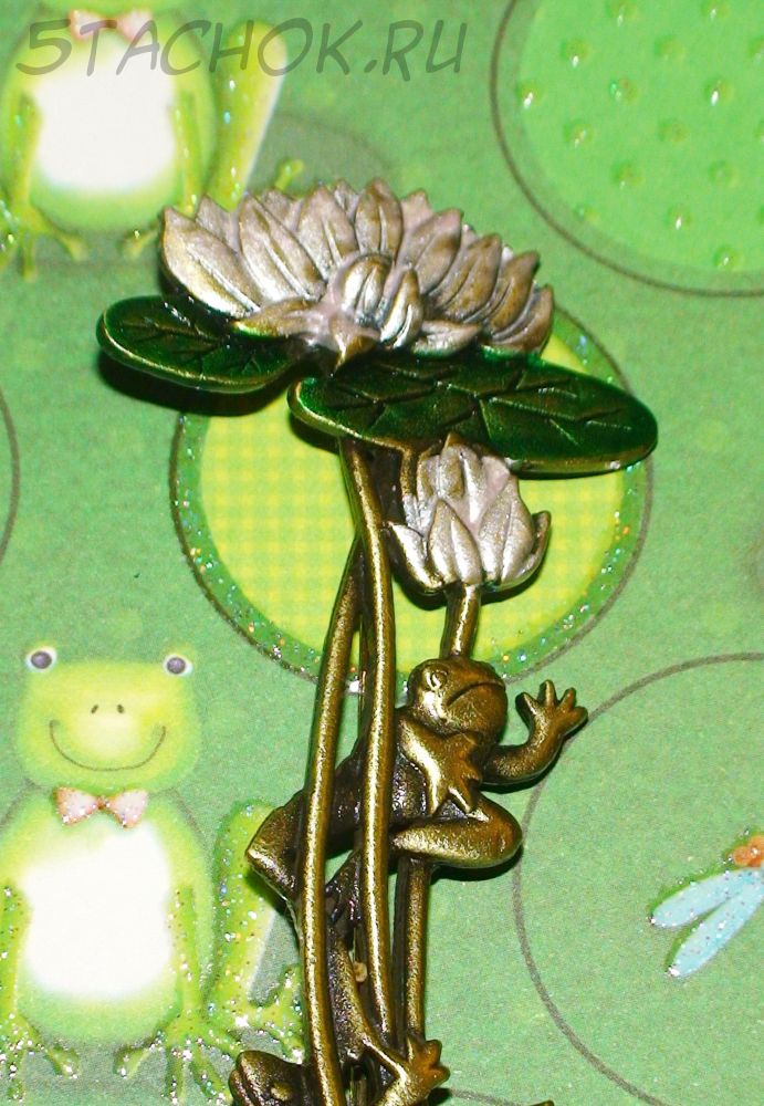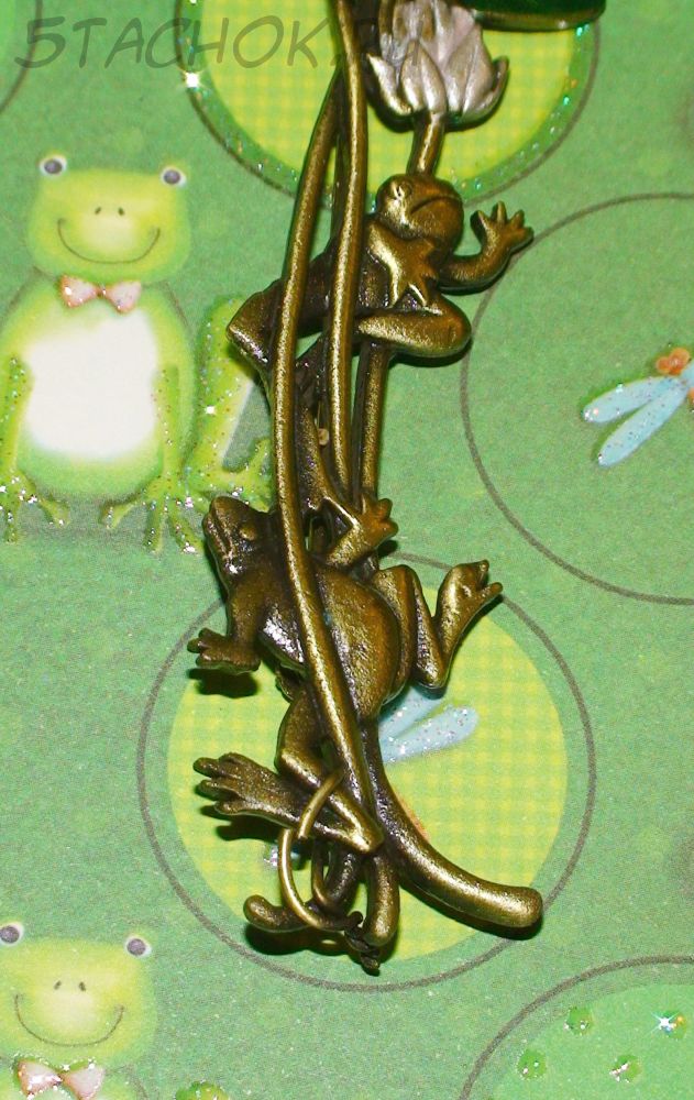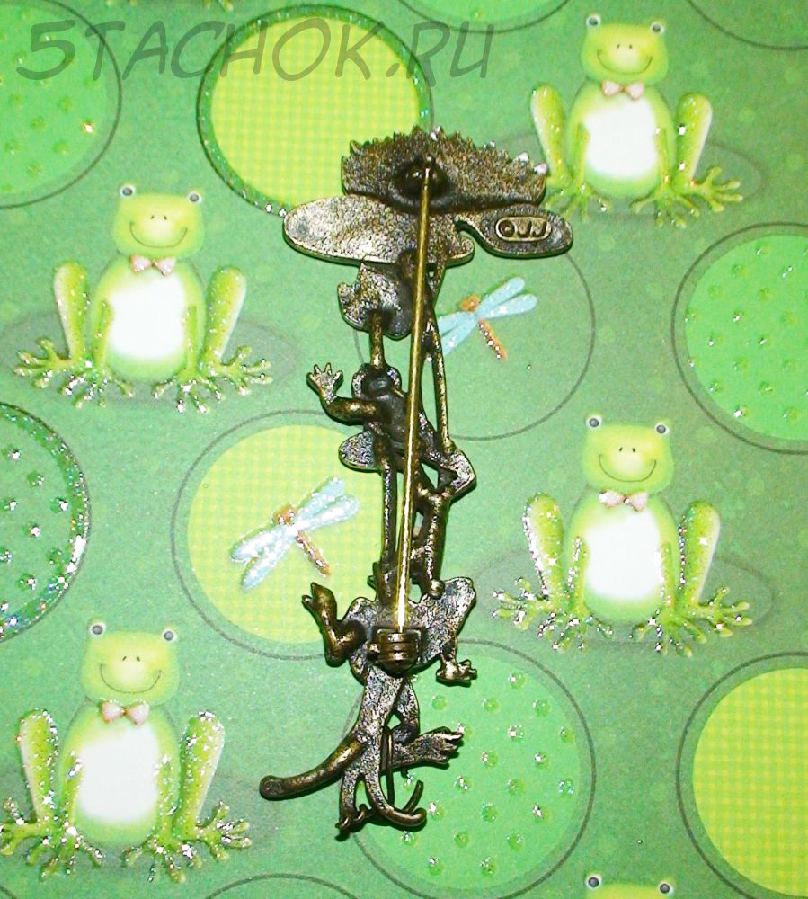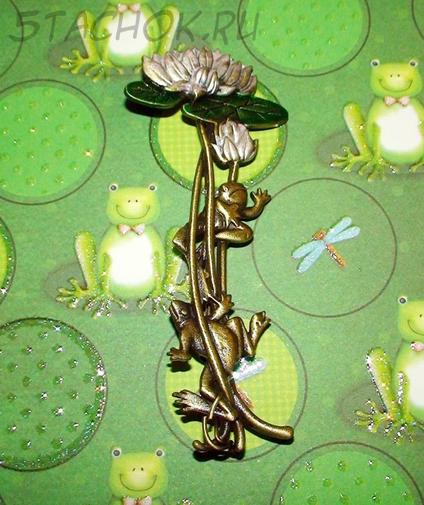 Брошь "Лягушки на кувшинке" под бронзу, эмаль