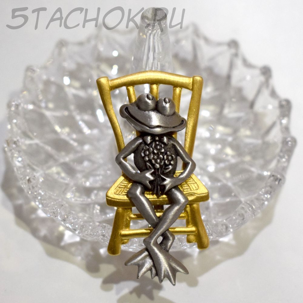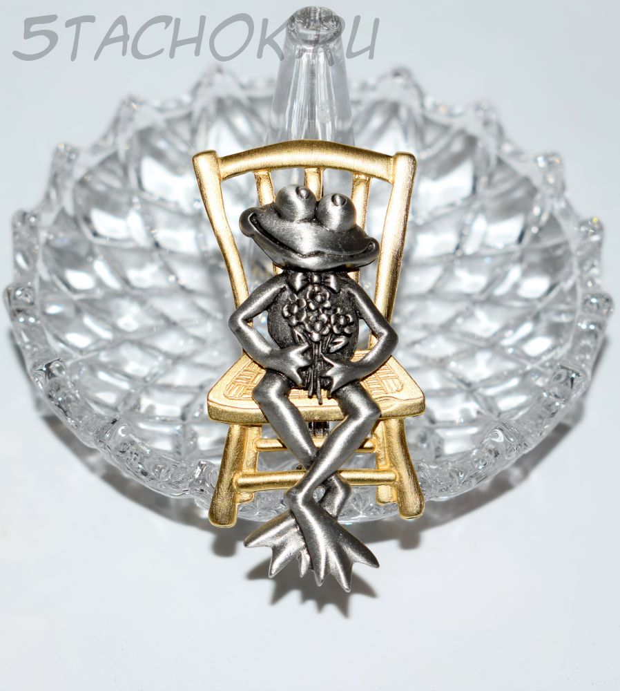 Лягушонок выполнен в цвете оловоа стульчик - матового золота.