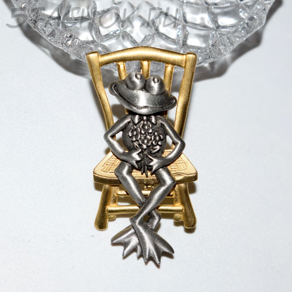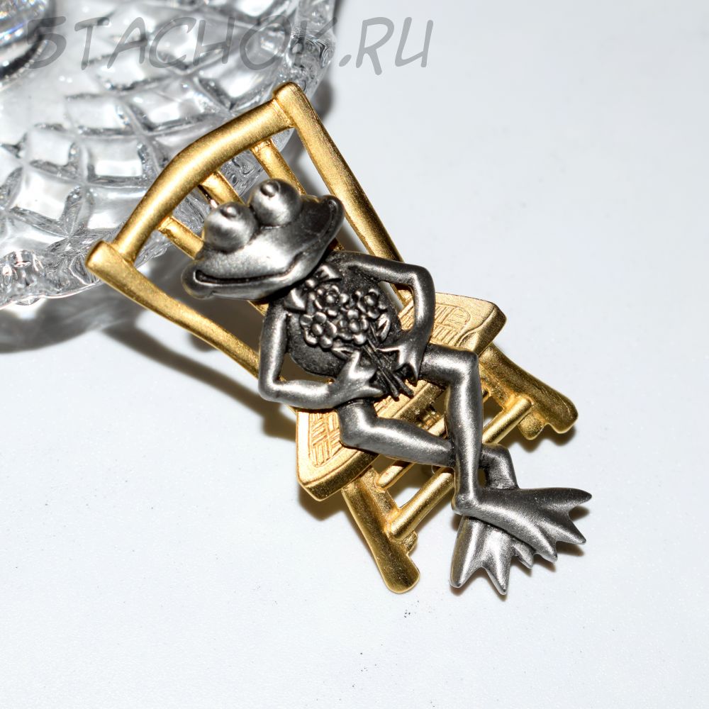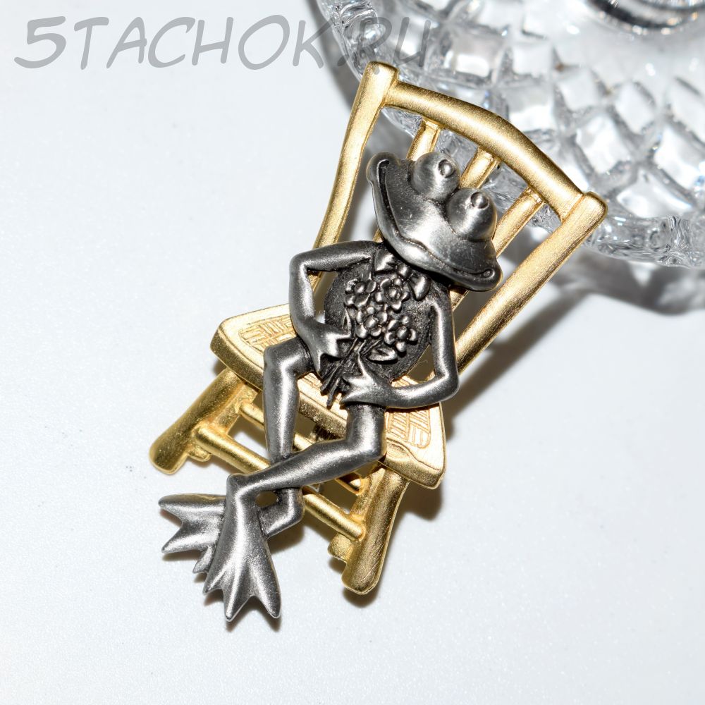 Брошь "Лягушонок с букетом на стульчике" (JJ США)