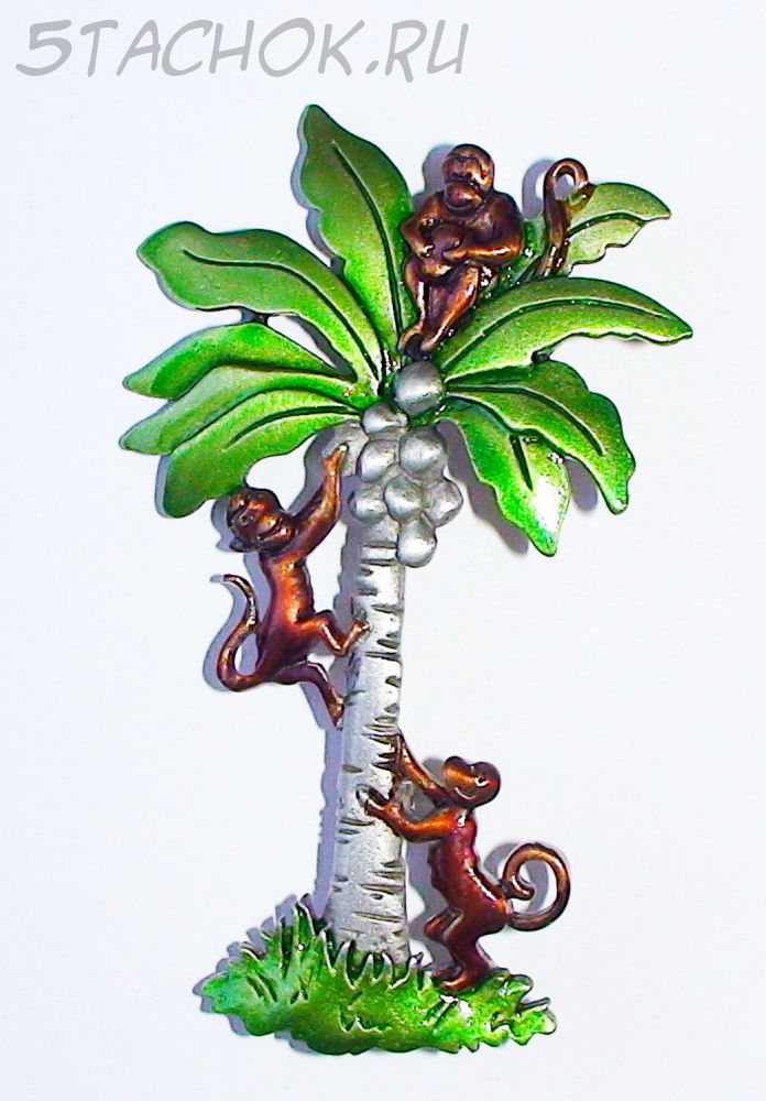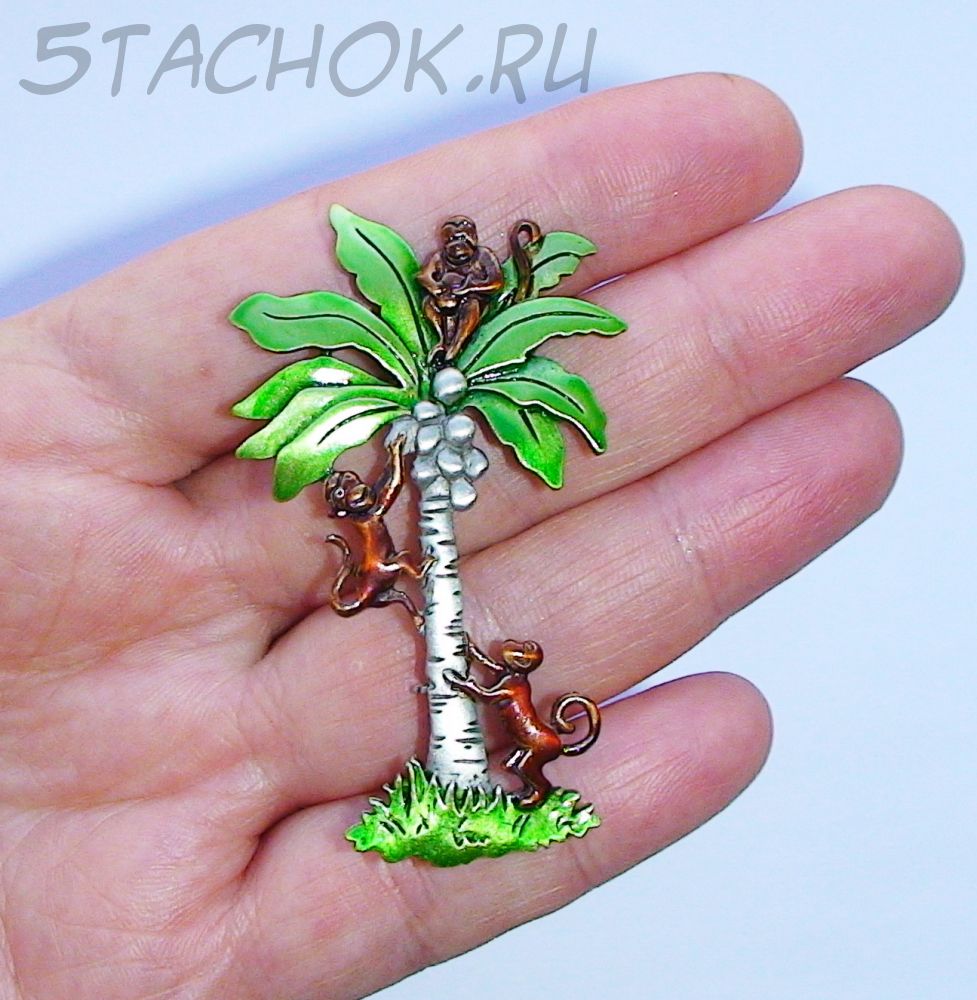 Брошь "Обезьянки на пальме" под олово, эмаль