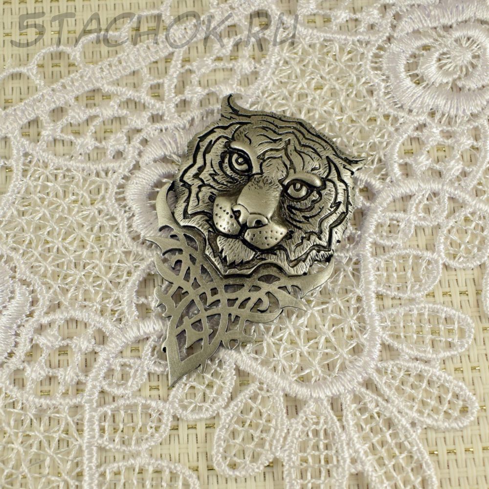 Прекрасная брошь из пьютера! Прорисованы все детали в мимике тигра. Очень выразительный взгляд приковывает к себе, оригинальная филигранная форма брошки.