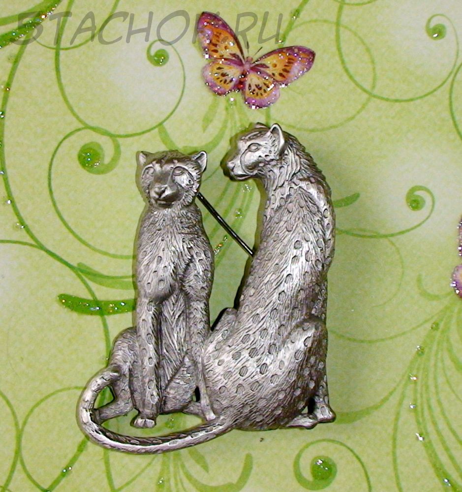 Брошь "Пара гепардов" под олово