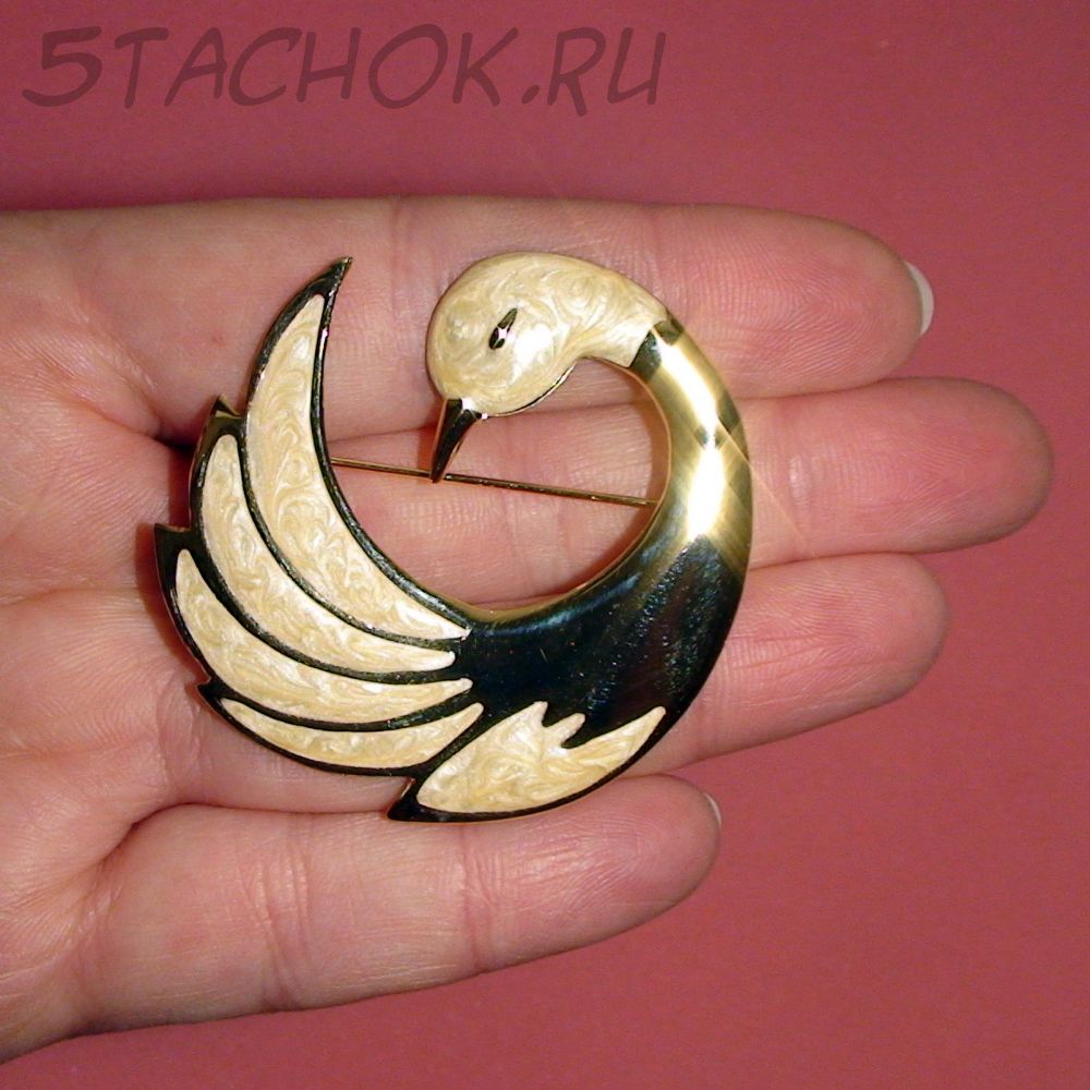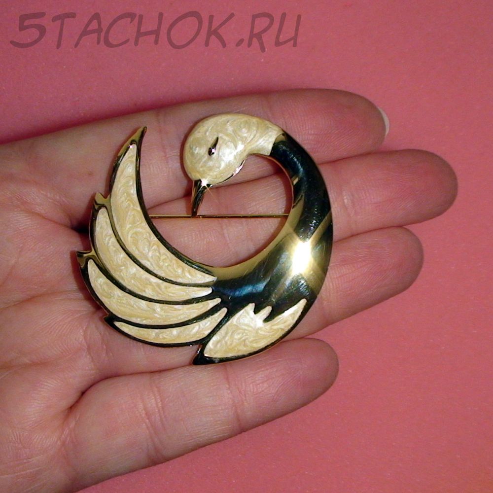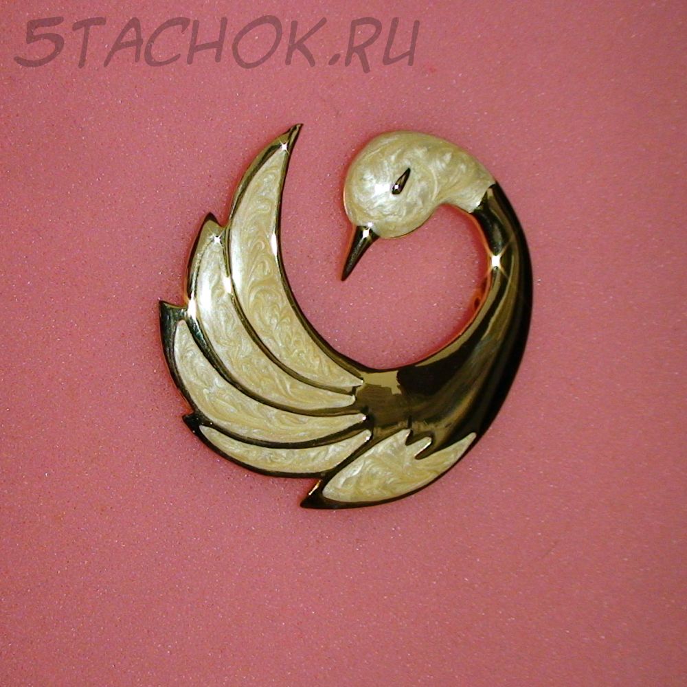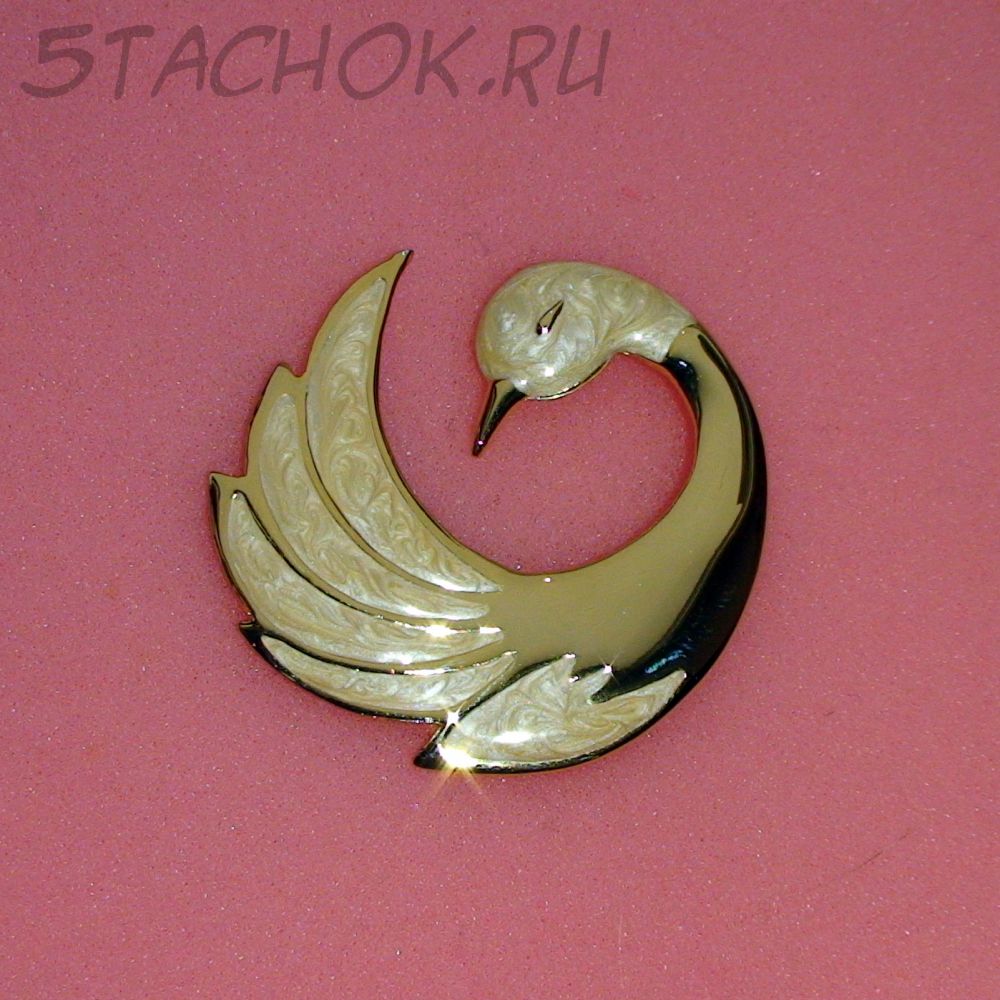 Брошь "Прекрасный лебедь" под золото/эмаль/перламутр