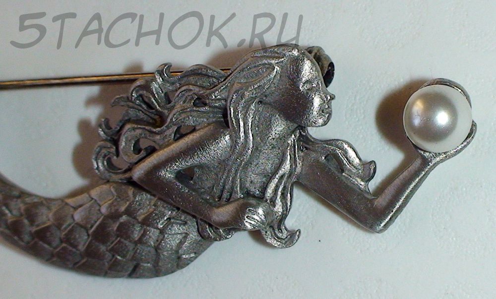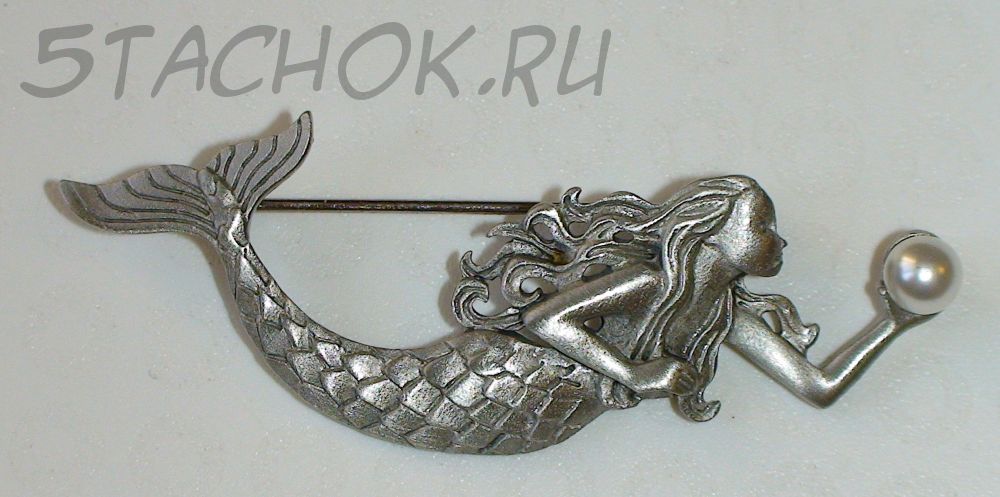 Брошь из пьютера (оловянный ювелирный сплав), камушек белого цвета с перламутром (под жемчужинку).