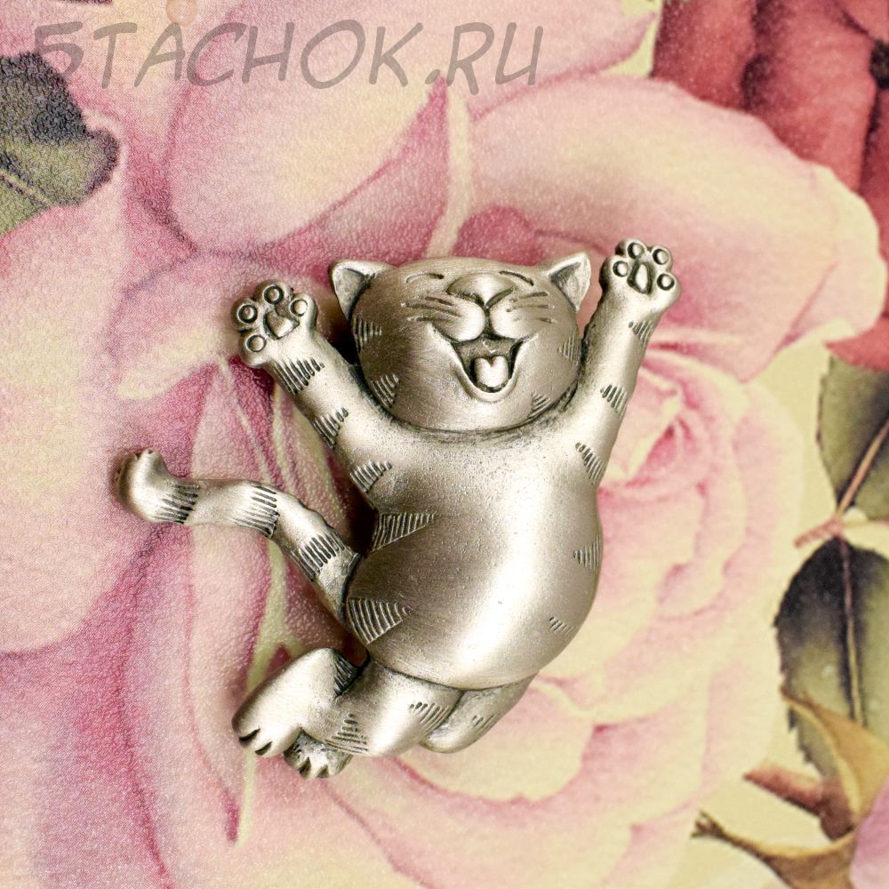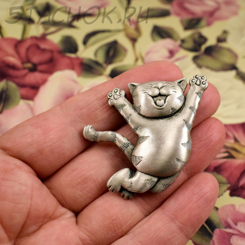 Брошь "Счастливый котик" цвет олова (JJ США)