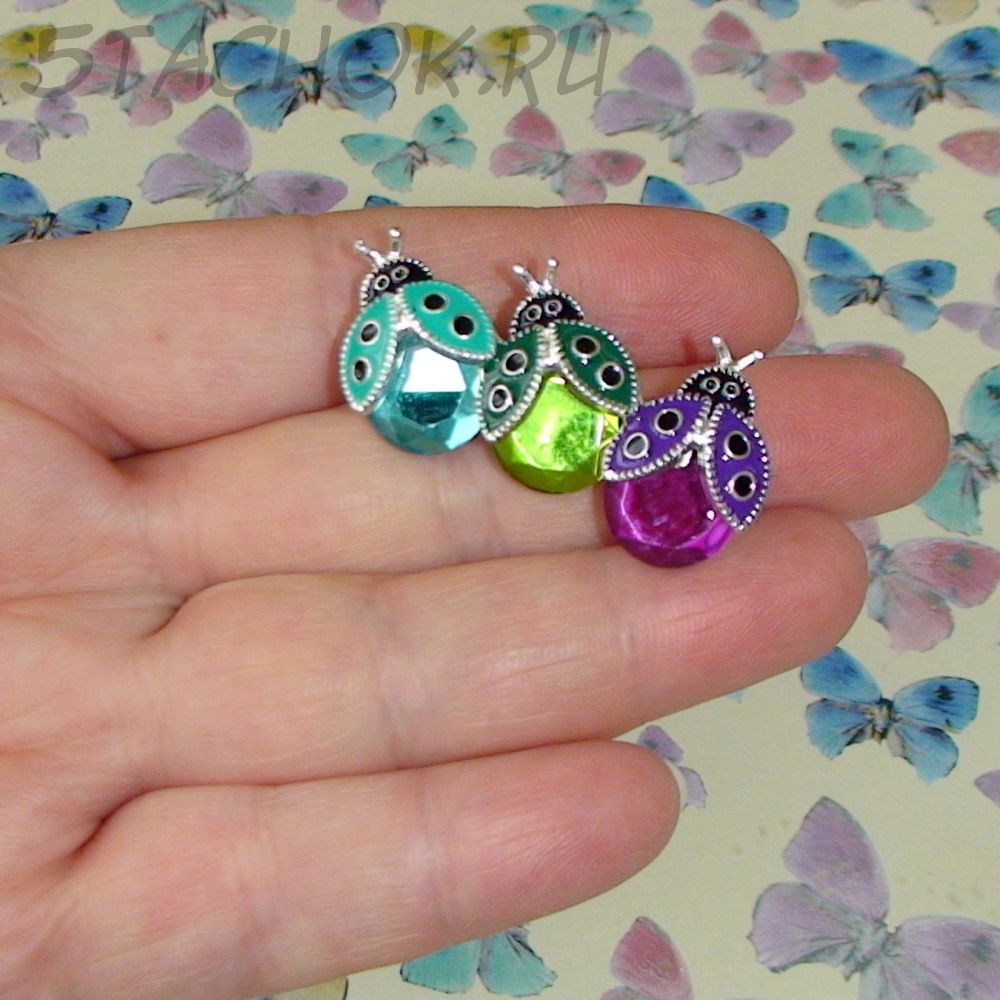 Брошь "Три божьих коровки" под серебро, эмаль, камушки