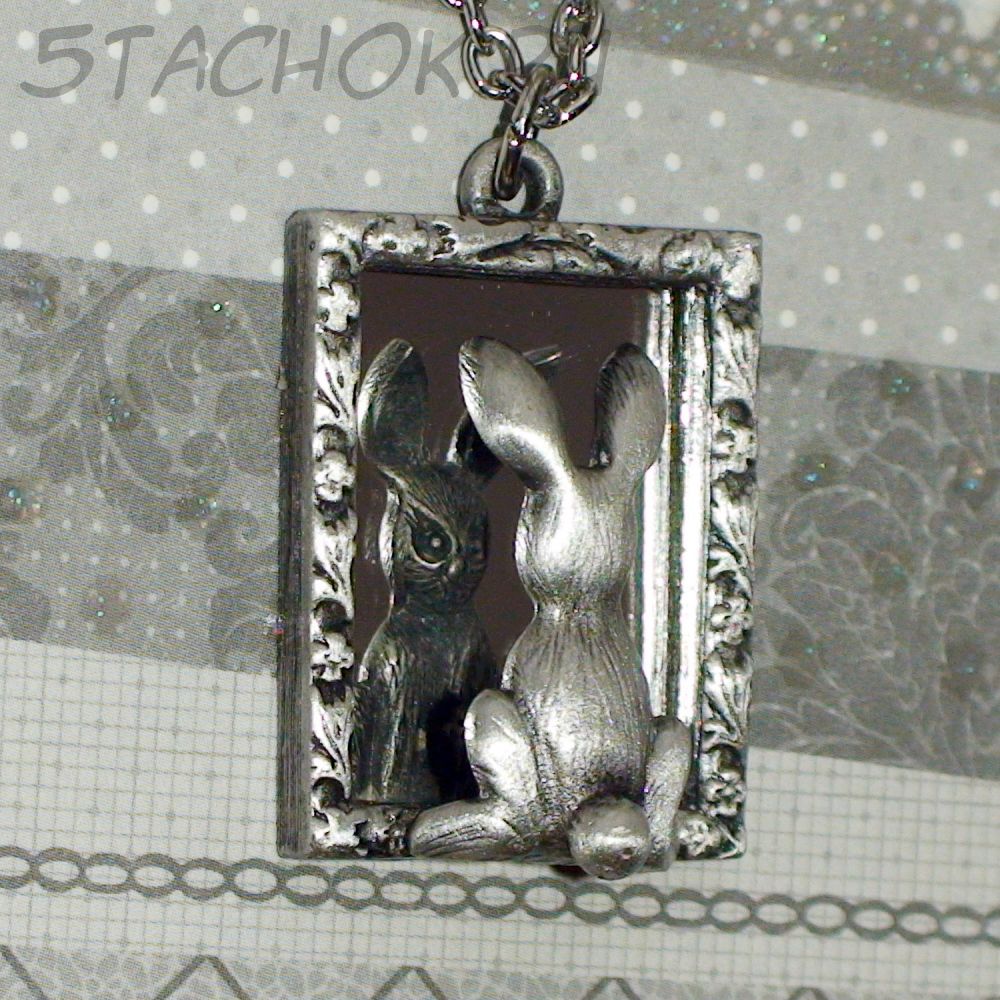 Очень редкое украшение! Миленькая зайка любуется на свое отражение в настоящем зеркале!