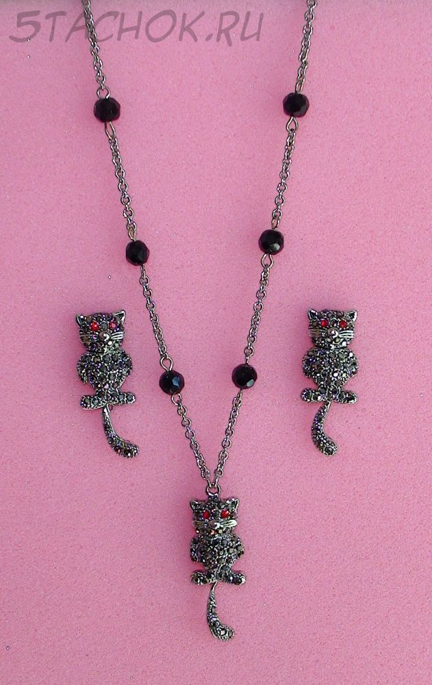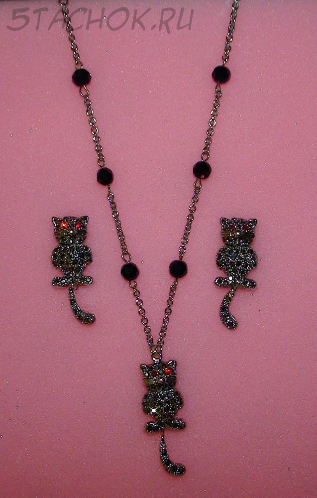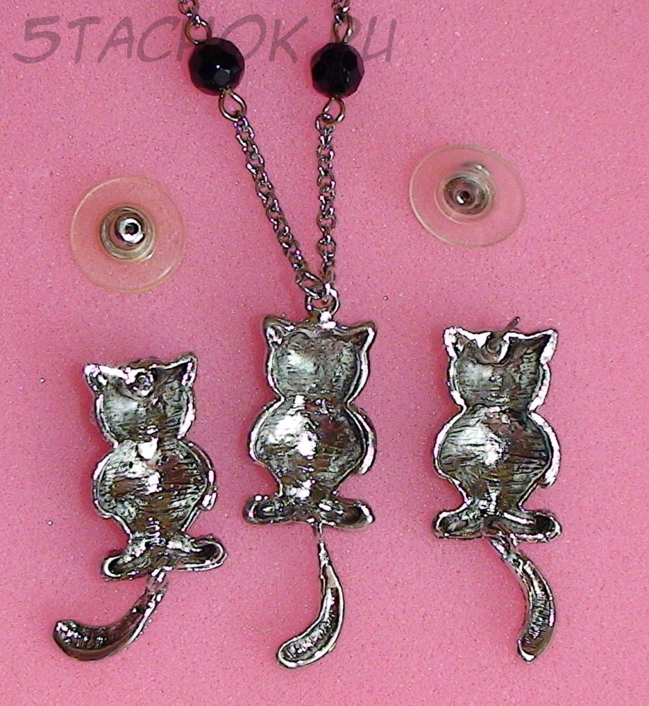 Колье и серьги-гвоздики "Котики с подвижными хвостиками"