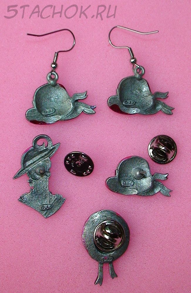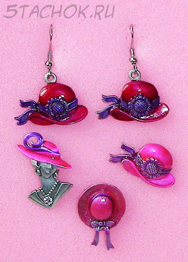 Комплект Серьги и 3 броши "Шляпки, шляпки, шляпки..." под олово, камень сваровски, ювелирная эмаль