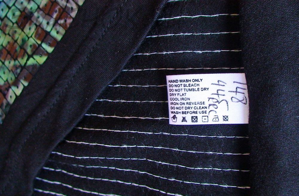Следовать инструкции по стирке (ручная стирка, не отбеливать, не сушить в стиральной машине, не гладить горячим утюгом, сушить на плоской поверхности, не использовать химическую чистку)